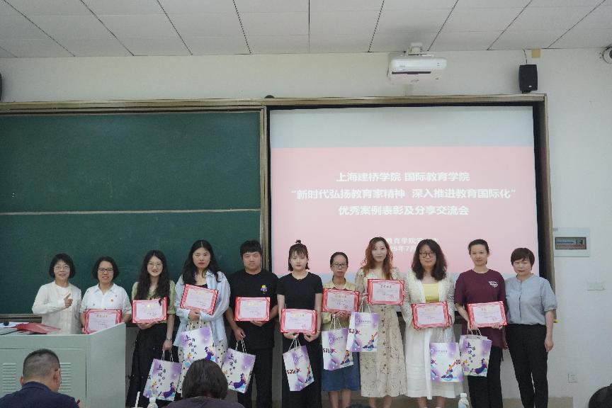 首先,岳会锦老师总结了本次弘扬教育家精神案例征集活动开展情况,并宣读了学院党总支表彰决定。岳老师提到,为全面贯彻落实习近平总书记关于弘扬教育家精神的重要指示精神,引导学院教职工以教育家精神为引领,牢记为党育人、为国育才的初心使命,牢固树立“躬耕教坛、强国有我”的志向和抱负,深耕中外合作办学和教育国际化,及时总结提炼教育教学和人才培养中的优秀做法,2024年12月,学院党总支下发了《中共上海建桥学院国际教育学院总支部委员会关于征集“新时代弘扬教育家精神 深入推进教育国际化”典型工作案例的通知》,向全体教职工征集典型案例。截止2025年3月,学院共征集案例9篇汇编成册。经学院党总支综合评议,决定将9篇工作案例评为优秀案例,并进行表彰和奖励,获奖的老师分别是:赵婷、任维、张凯、贺亚茹、胡伟、郑越、周晓帆、杨静、岳会锦。
