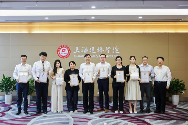 校长、市欧美同学会临港新片区分会理事朱瑞庭担任会长;丁哲寅、汤美娜、陈苏婷担任副会长;张芷陌担任秘书长;杨璞、张凯、陈栋鑫、夏金涛担任理事。上海市欧美同学会澳新分会会长、上海建桥学院党委书记杨伟人向建桥分会第一届理事会成员颁发了铭牌。