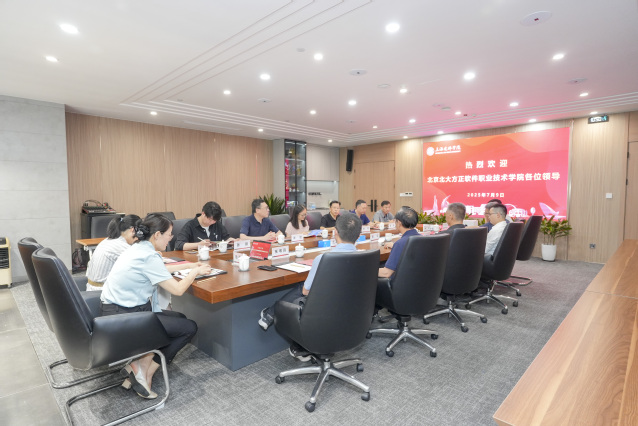 7月9日上午,北京北大方正软件职业技术学院党委书记胡晓芳、校长李军等一行来访我校,常务副校长张震接待并主持座谈交流,相关职能部门和学院负责人参与接待。
