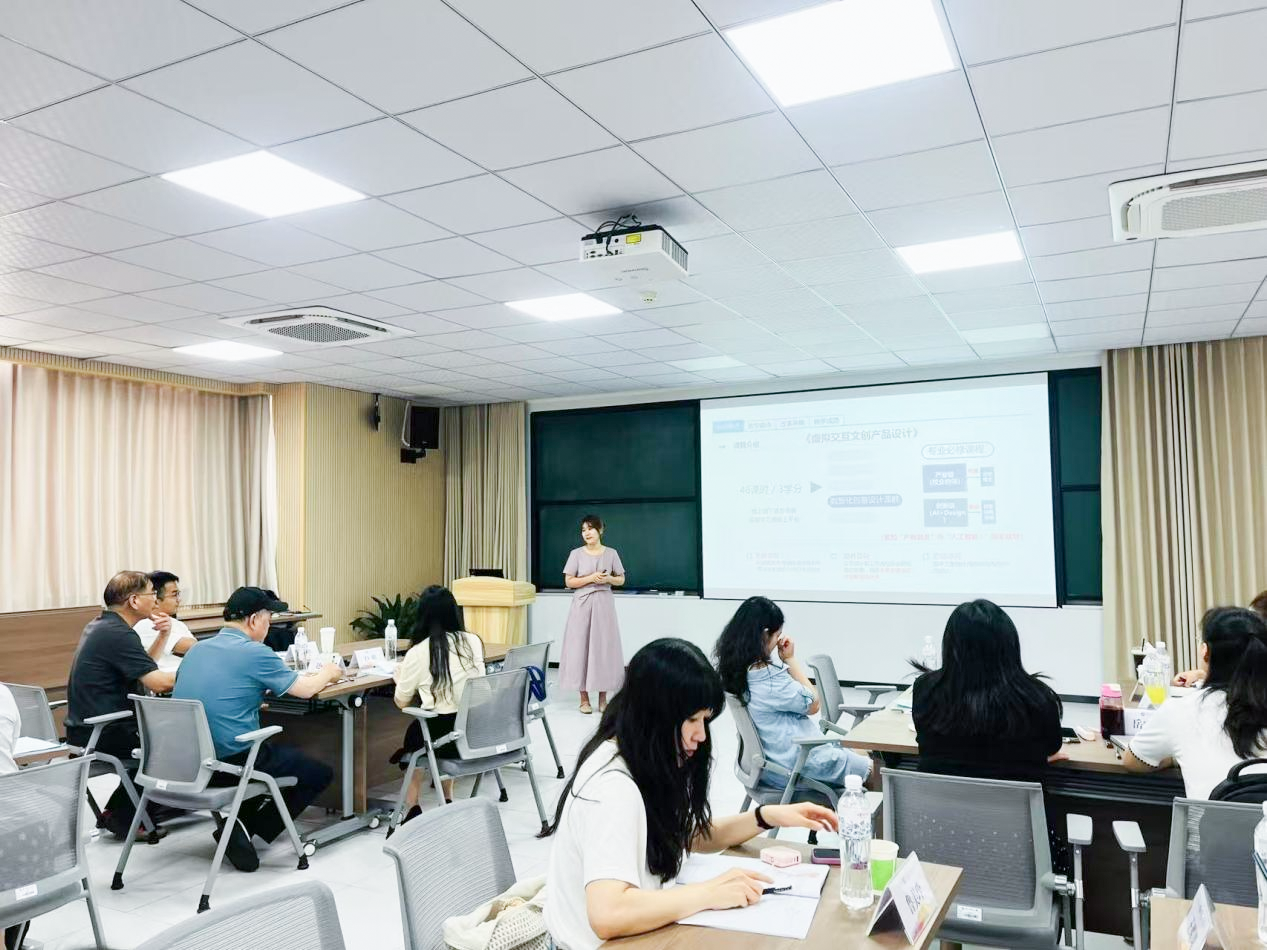 思政教育与实战磨砺环节深化了研修内涵。高强度的磨课环节成为检验学习成果的关键。7月8日,机电学院岳雪婷(嵌入式操作系统)、马克思主义学院庞琨(爱国主义“三统一”)、珠宝学院常银(产教融合首饰设计)三位教师进行了精彩说课。浙江师范大学研究生院院长温教授与上海建桥学院教务负责人现场精准指导,紧扣“高阶性、创新性、挑战度”金课标准,提出深挖内容、对接前沿、提升挑战度及自然融入思政等关键建议,现场互动热烈,形成了“研-磨-改”的闭环提升机制。7月10日,第二轮磨课中,三位参赛教师牛向南(教创赛《虚拟交互文创产品设计》课程)、谢丹萍(青教赛《乐理与声乐》课程)、祝雅慧(青教赛《用户界面设计》课程)依次展示备赛内容。浙江工商大学施教授与赵雷洪副校长担任评委。针对教创赛备赛,两位专家系统解读赛事框架,重点强调教学评价需兼顾过程性与终结性评价,教学成效展示应涵盖学习效果、教科研成果及推广应用价值等多元维度。围绕青教赛,施教授从理论性与学术性深度平衡、严谨性与风趣性有机融合、技术应用与思想传递协同增效、演讲技巧与讲课本质精准区分、教学表现与内容呈现合理把握五个关键维度提出优化建议,为青年教师厘清教学表现力的核心逻辑。赵校长则建议在20分钟课堂教学中进一步优化内容选择、结构组织与仪态呈现。