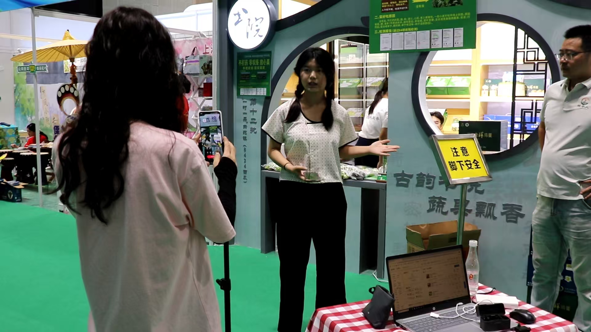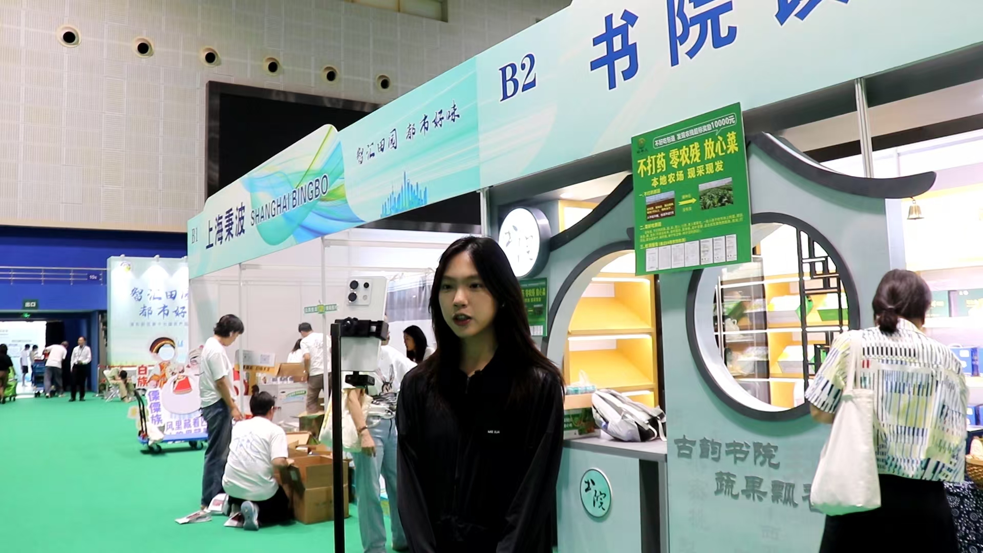 浦东新区第十七届农业博览会于7月13日在源深体育馆落下帷幕。建桥闻传学子深度参与本届盛会,不仅战略合作企业上海辛江农业技术专业合作社(书院镇B2展位)的优质农产品广受追捧,更依托“直播产教融合项目”团队,将农博会转化为一堂生动的产教融合实践大课。