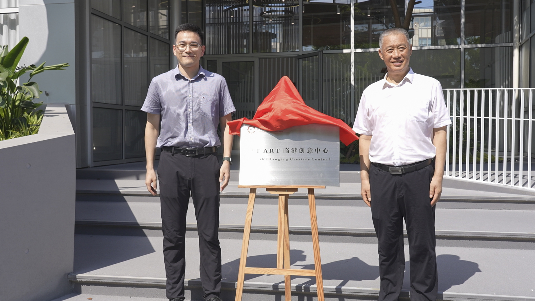临港新片区管委会商旅处副处长朱峰与上海建桥学院常务副校长张震揭牌