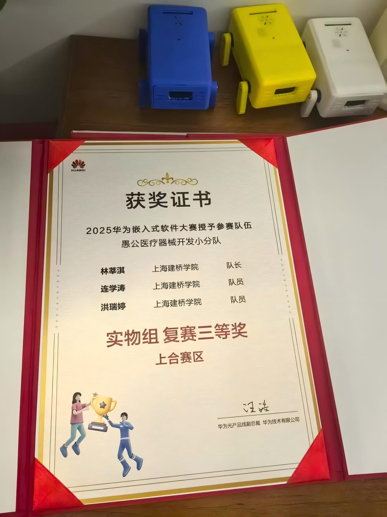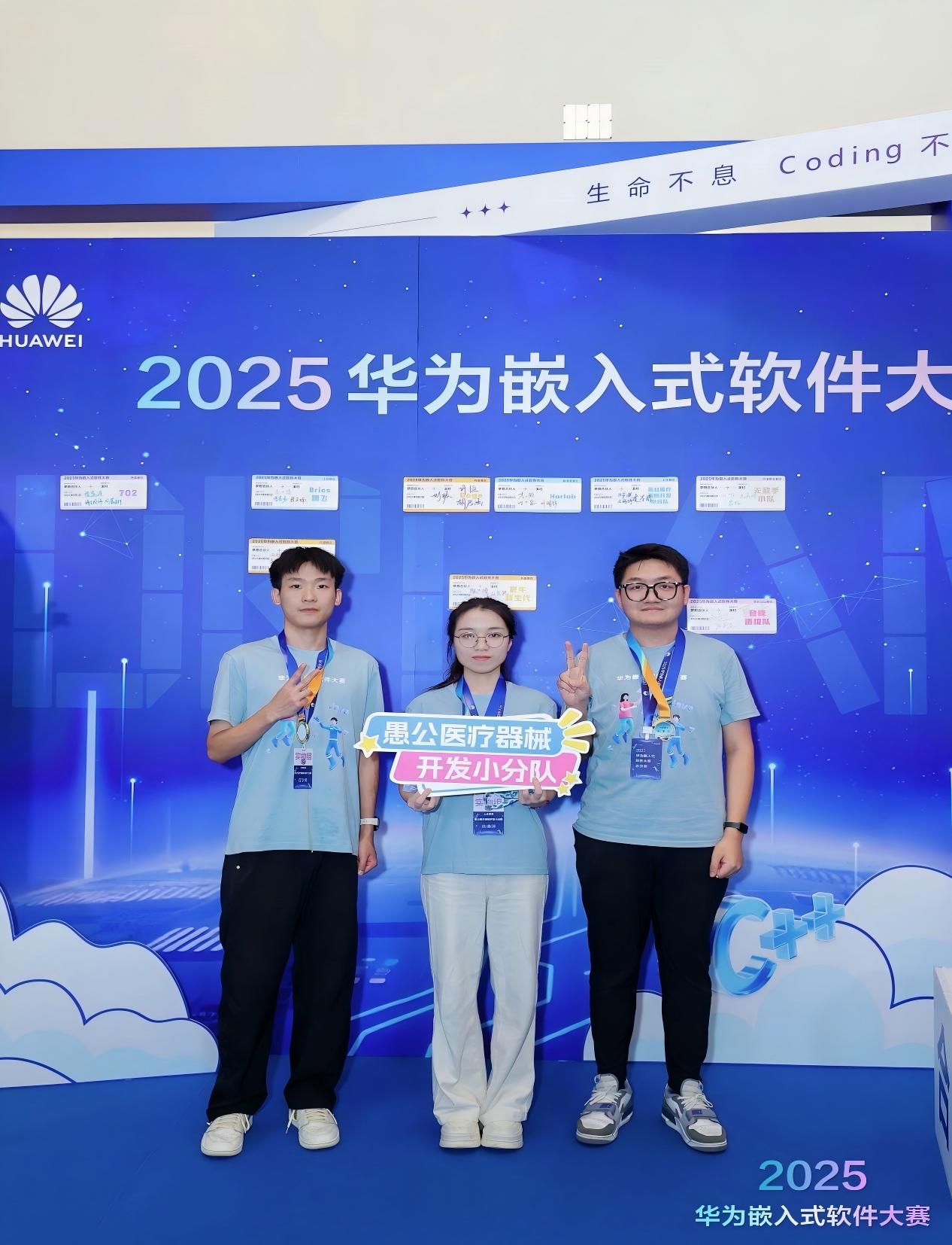 在 2025 年第七届华为嵌入式软件开发大赛的激烈角逐中,上海建桥学院机电学院微电子科学与工程专业的连学涛、林莘淇以及洪瑞婷三位同学组成的 “愚公医疗器械开发小分队” 凭借硬核实力与创新思维崭露头角,成为赛事中亮眼的 “黑马”。