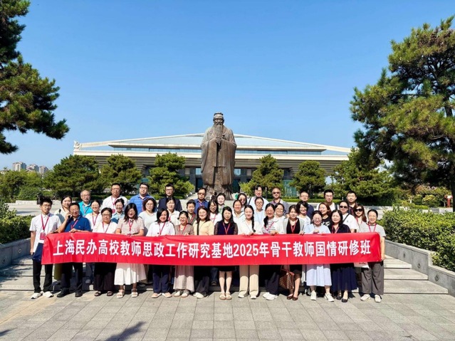 为深入学习贯彻全国教育大会精神,贯彻落实习近平总书记关于教师队伍建设的系列讲话和指示批示精神,进一步强化民办高校教师教师对党情国情社情的认知,引导教师大力弘扬践行教育家精神,自觉践行为党育人、为国育才初心使命,2025年8月20日至22日在上海市民办教育综合党委的指导下,上海民办高校教师思政工作研究基地(上海建桥学院)组织承办了2025年上海民办高校骨干教师国情研修班。来自上海17所民办高校的骨干教师、有关思政工作人员共42人前往山东曲阜开展国情研修。