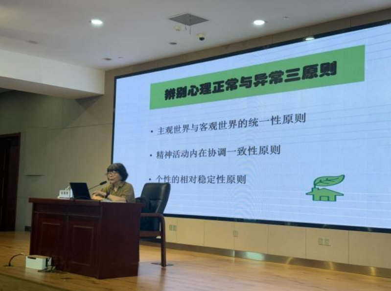 上海建桥学院⼼理中⼼顾问张海燕教授以《大学生心理健康促进与危机预防》为题作报告,介绍了辨别心理正常与异常三个原则,讲解了四种心理危机的预防与干预,详细分析了评估自杀风险的五条标准。