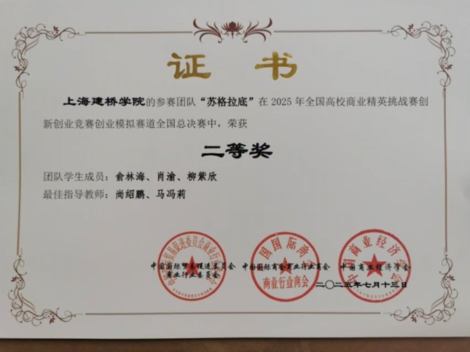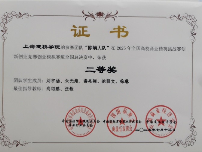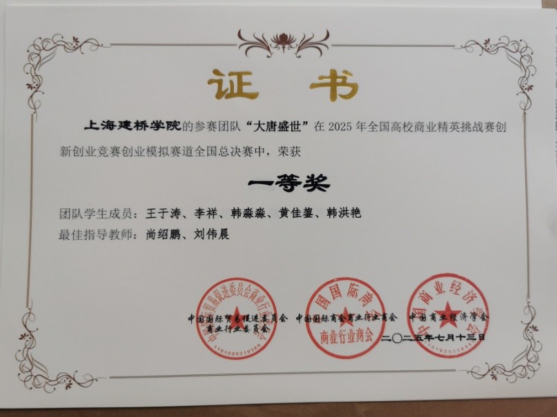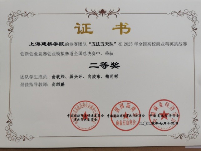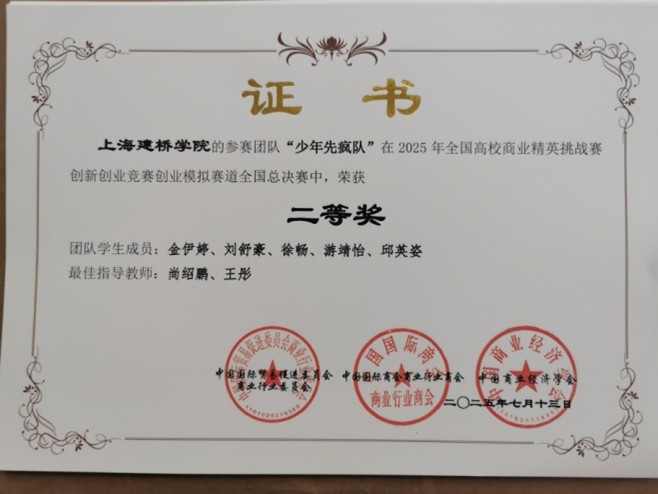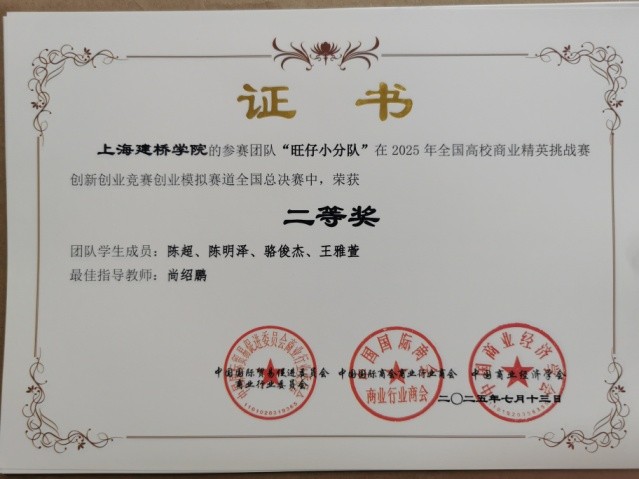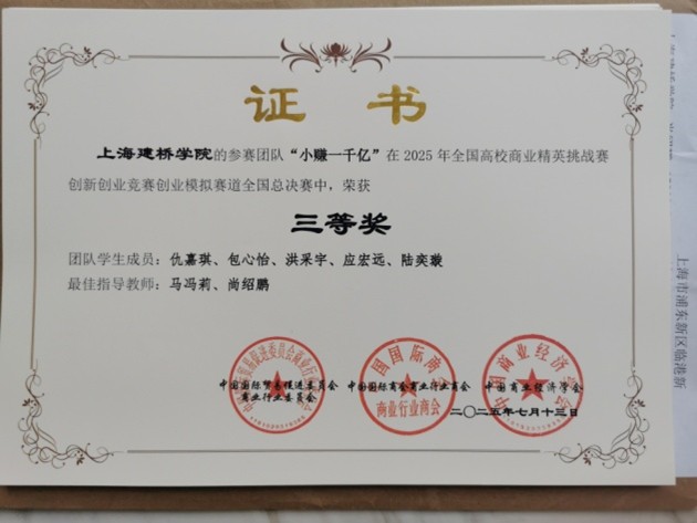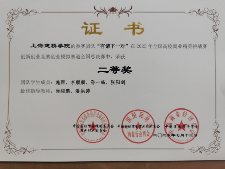 近日,2025年全国高校商业精英挑战赛创新创业竞赛(创业模拟赛道)全国总决赛结果揭晓,上海建桥学院代表队喜获一等奖1项、二等奖7项、三等奖1项,实现历史新突破,充分展现了我校师生在创新创业教育方面的丰硕成果。