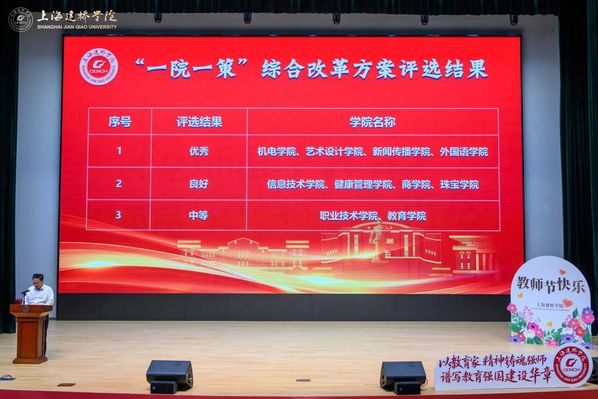会上宣读了学校“一院一策”综合改革方案评选结果。建设产教融合型大学是事关学校未来发展的重大战略。学校目前正在全力推进产教融合型大学建设,在暑期务虚会上部署了“一院一策”编制工作。机电学院、艺术设计学院、新闻传播学院、外国语学院四个学院获得优秀等第。