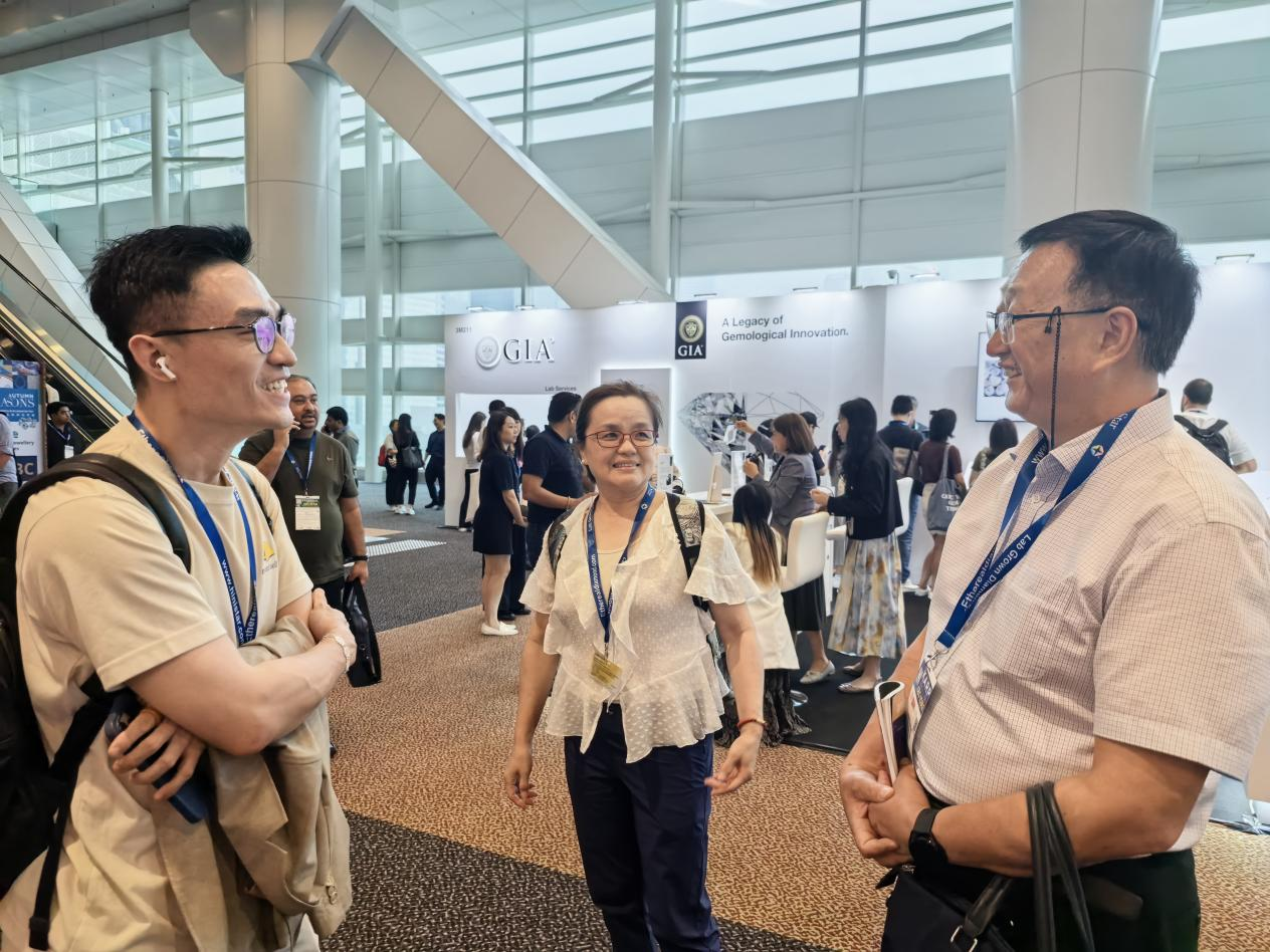 会议期间,刘衔宇院长与美国宝石研究院(GIA)、江苏南京宝光检测技术有限公司等权威机构进行深入交流,双方就翡翠产地鉴定技术、人才培养模式以及未来可能开展的产教融合项目交换意见,并表示后续将进一步加强合作、共同推进课程资源建设的意愿。