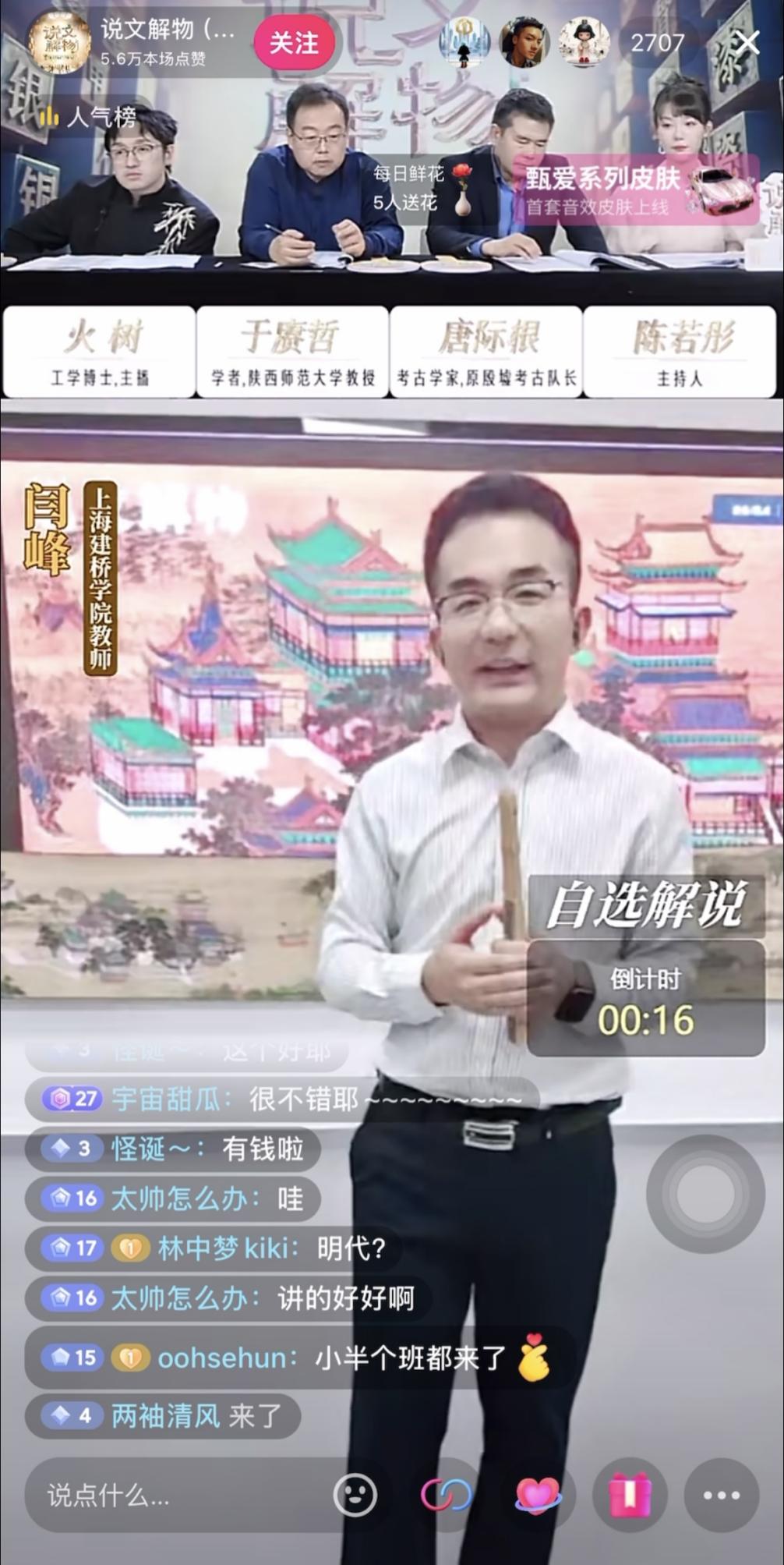 此前,闫峰老师凭借深厚的文化底蕴和出色的专业素养,成功跻身活动的全国百强名单。此次直播连线是“100进30”的关键环节,竞争异常激烈。在节目中,闫峰老师以三分钟的时间,深入浅出地讲解了明代画家仇英的《清明上河图》十米长卷。他从中国古代长卷的独特欣赏方式讲起,阐述了工笔重彩绘画的鲜明特色,剖析了传移模写这一创新形式的精妙之处,还展现了界画精工的独特魅力。通过他的讲解,观众仿佛穿越时空,领略到了几百年前的“一镜到底”盛景。