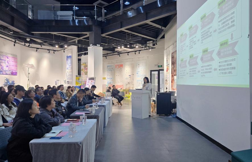 首先环境设计系主任张慧慧作就业工作汇报。她围绕专业特色、就业成效、培养举措及未来规划四大维度展开,详细介绍环境设计专业作为跨学科复合型专业,聚焦智慧城市建设、美丽乡村更新等领域,形成的 “精准区域对接、双师共育、实景教学” 三大特色。明确后续将聚焦城市存量住房改造、室内外环境一体化提升等市场需求,持续优化人才培养方向。