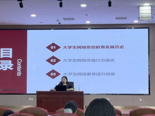 上海交通大学马克思主义学院硕士生导师梁钦副教授以《与05后对话:大学生网络思政教育谈》为题作报告。她梳理了大学生网络思政教育发展的四个阶段及其特点,分析了大学生网络传播行为模式以及数字时代年轻人的特点,讲解了辅导员在网络时代做好思政工作的策略。