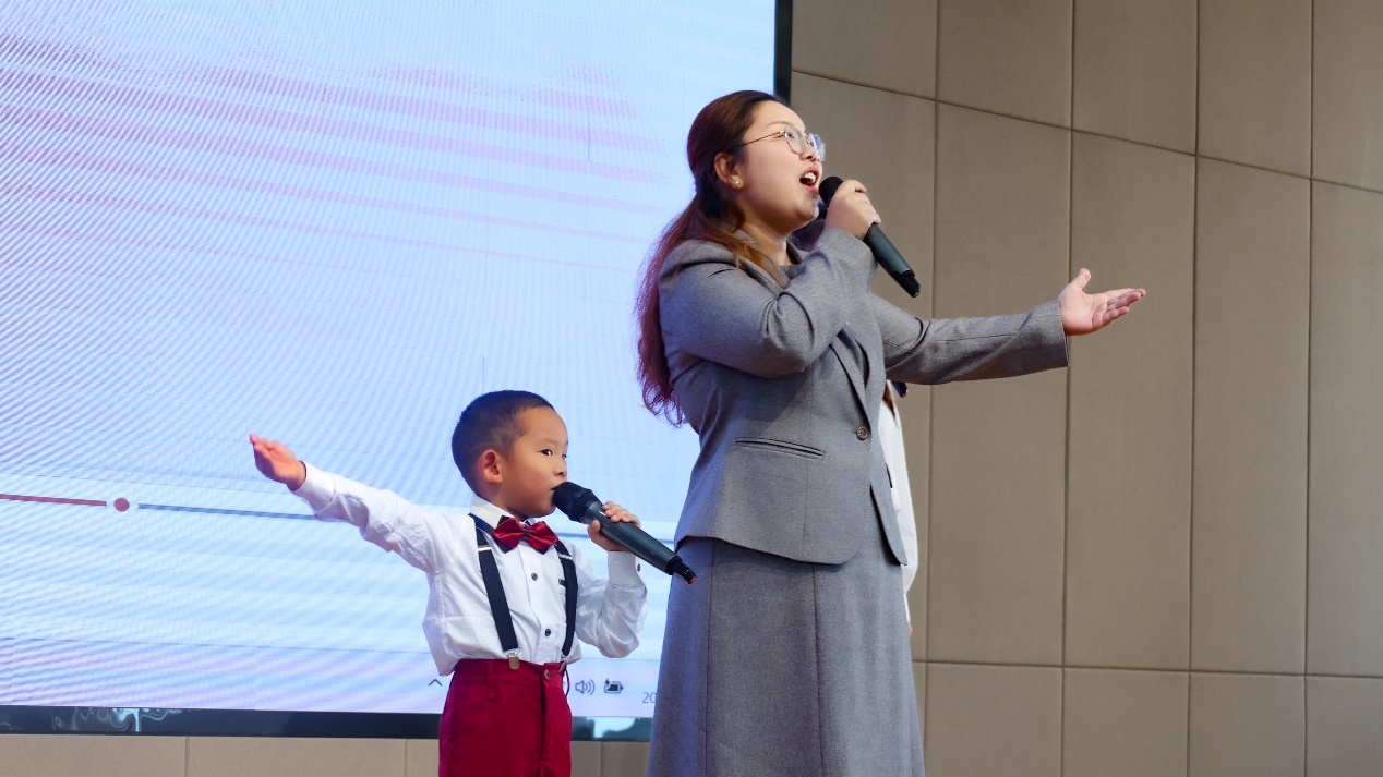 教育学院谢丹萍老师与自己的儿子谢辰昱联手教育学院梁冠怡、宛冉、林佳艺同学一起表演了《歌唱祖国》,生动表达了我们的祖国正昂首阔步走在康庄大道上的自豪与骄傲的心情,独特的表演方式与深情演唱,激发出现场师生溢于言表的自豪心情。谢老师与儿子的深情演唱,是爱国情感与母爱水乳交融的生动展现。本次爱国主义教育课的高潮无疑属于上师大附属临港科创小学的小学生表演的大合唱《祖国有我》和武术操《雏鹰展翅》。三十人小学生的大合唱歌声嘹亮,情感充沛,表情生动,充分表达了本次爱国主义教育主题,雄壮高扬的歌声让我们激动不已。而动作矫健、声音洪亮,一招一式的武术操《雏鹰展翅》,更是展现了小学生像雄鹰那样展翅高飞的形象,表达了立志成才、报效祖国的坚定行动。
