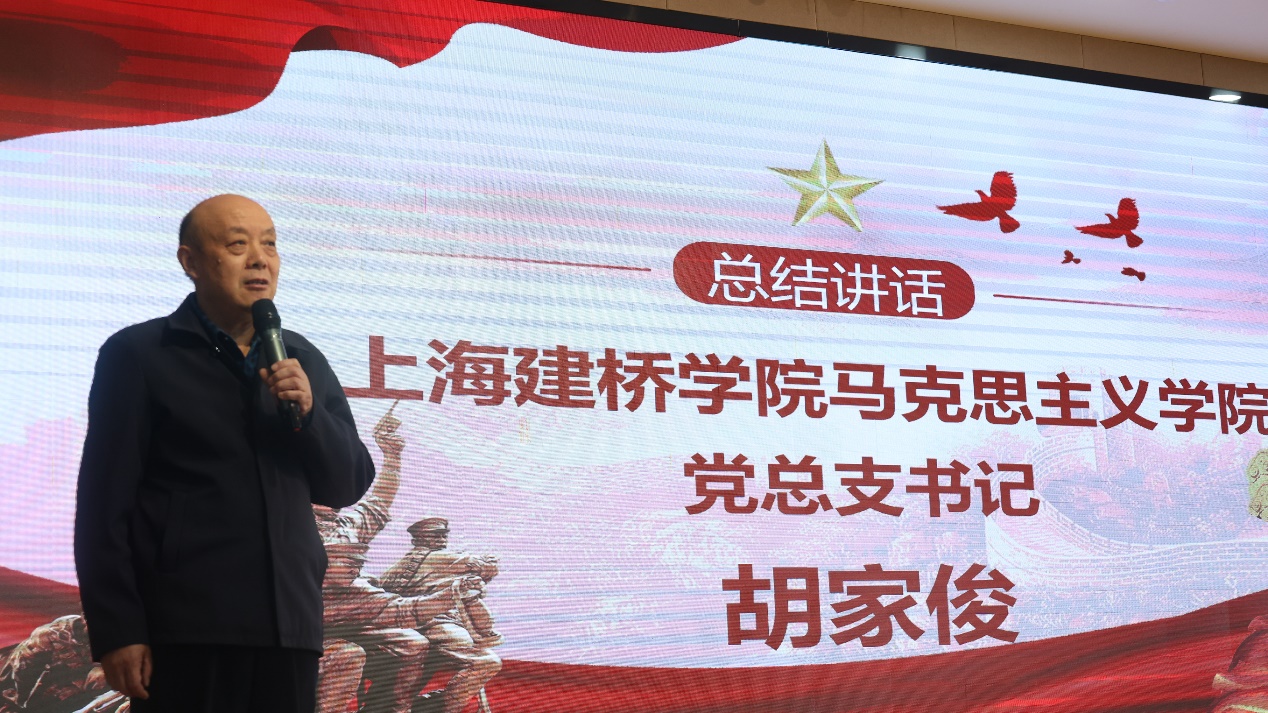 上海建桥学院马克思主义学院党总支书记胡家俊在总结讲话中指出,本次爱国主义主义教育课主题鲜明,形式新颖,内容丰富,以多样的表示形式表达了伟大抗战精神所蕴含的内涵,具有很强的教育性,是一堂高质量的思政课。他表示,马院要充分发挥牵头作用,提高站位,探索创新,深化大中小一体化思政课的品牌打造,把不同学段和各层级资源汇集起来,推进大思政课建没,更好地落实立德树人根本任务。