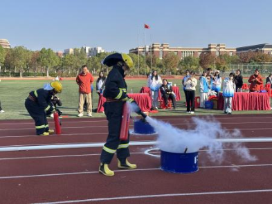 竞赛现场氛围热烈而紧张,三项实操科目层层递进、紧贴实战,全方位考验应急处置能力与团队协作水平。第一项单人消防技能比拼中,新闻传播学院选手身着消防服动作干脆利落,手持灭火器快速绕柱、精准瞄准火源,按压喷射一气呵成,与另一支队伍持平,稳稳守住第一梯队阵地。然而进入第二项双人协作科目,面对自主呼吸器佩戴与假人腰结固定的复杂操作,队员们虽动作规范却稍显谨慎,节奏略缓,最终以微弱差距暂时落后,赛场形势瞬间变得紧张起来。