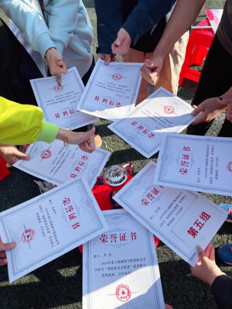 10支队伍奋勇争先,经过多轮激烈角逐,新闻传播学院参赛队凭借稳定的发挥、娴熟的技能和默契的配合,在比拼中脱颖而出,最终斩获本次竞赛二等奖,用实力诠释了对消防安全知识与实操技能的扎实掌握,更展现了建桥闻传学子的卓越风采与师生同心的凝聚力。