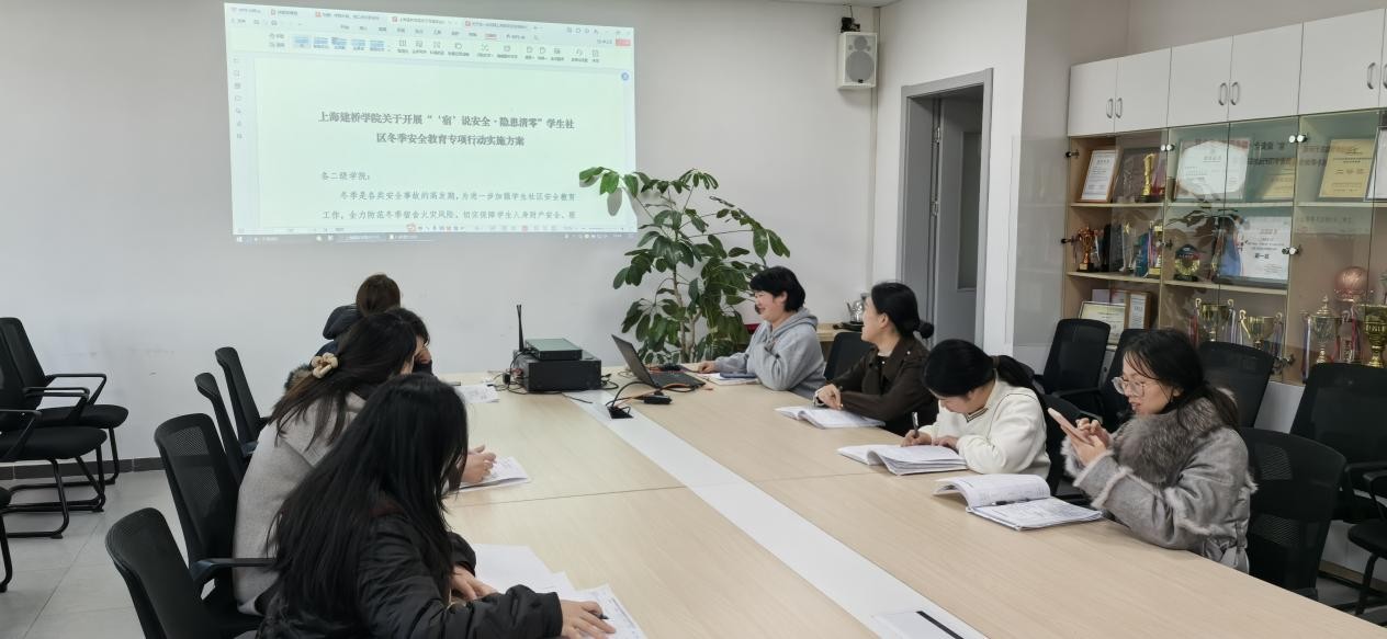 为切实筑牢学生社区安全防线,近日,上海建桥学院职业技术学院召开专题会议,部署“‘宿’说安全・隐患清零”冬季学生社区安全教育专项行动计划。学院党委副书记马冯莉主持会议,全体辅导员参加会议。