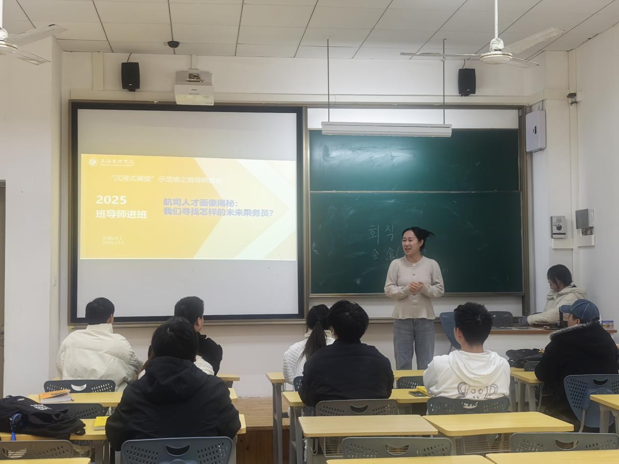 为更好的帮助空乘专业学子精准把握行业人才需求,明确职业发展方向,近日,空乘 24-1 班班导师丁雅老师以 “聚焦航司人才画像解密:我们寻找什么样的未来乘务员” 为主题,开展“”沉浸式课堂“”之班导师进班专题分享会。全体空乘 24-1 班学生参会,现场互动热烈。