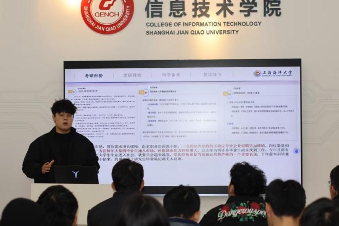 为帮助我院考研学子明晰备考方向、掌握高效复习方法,缓解备考压力,2025年12月9日下午,信息技术学院学习支持中心于111召开考研分享会暨考研送温暖活动。学院党委副书记徐娜老师、学习支持中心负责老师张灿灿老师出席活动,分享会特邀我院优秀校友、上海海洋大学研二学生田乐鑫学长担任主讲人,带来全方位的考研经验指导。