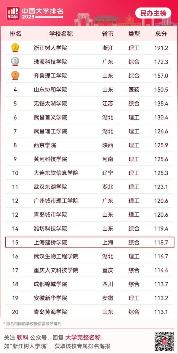 2025年,学校在多项权威大学排行榜中位次实现大幅跃升,综合办学实力和社会声誉获得高度认可。在校友会2025中国大学排名中,学校雄踞民办大学I类第3名,跻身全国顶尖民办高校行列,同时,学校荣膺校友会网“2025上海市最好民办大学排名”榜首;在2025软科中国民办高校排名中,位列全国第15位,持续攀升。