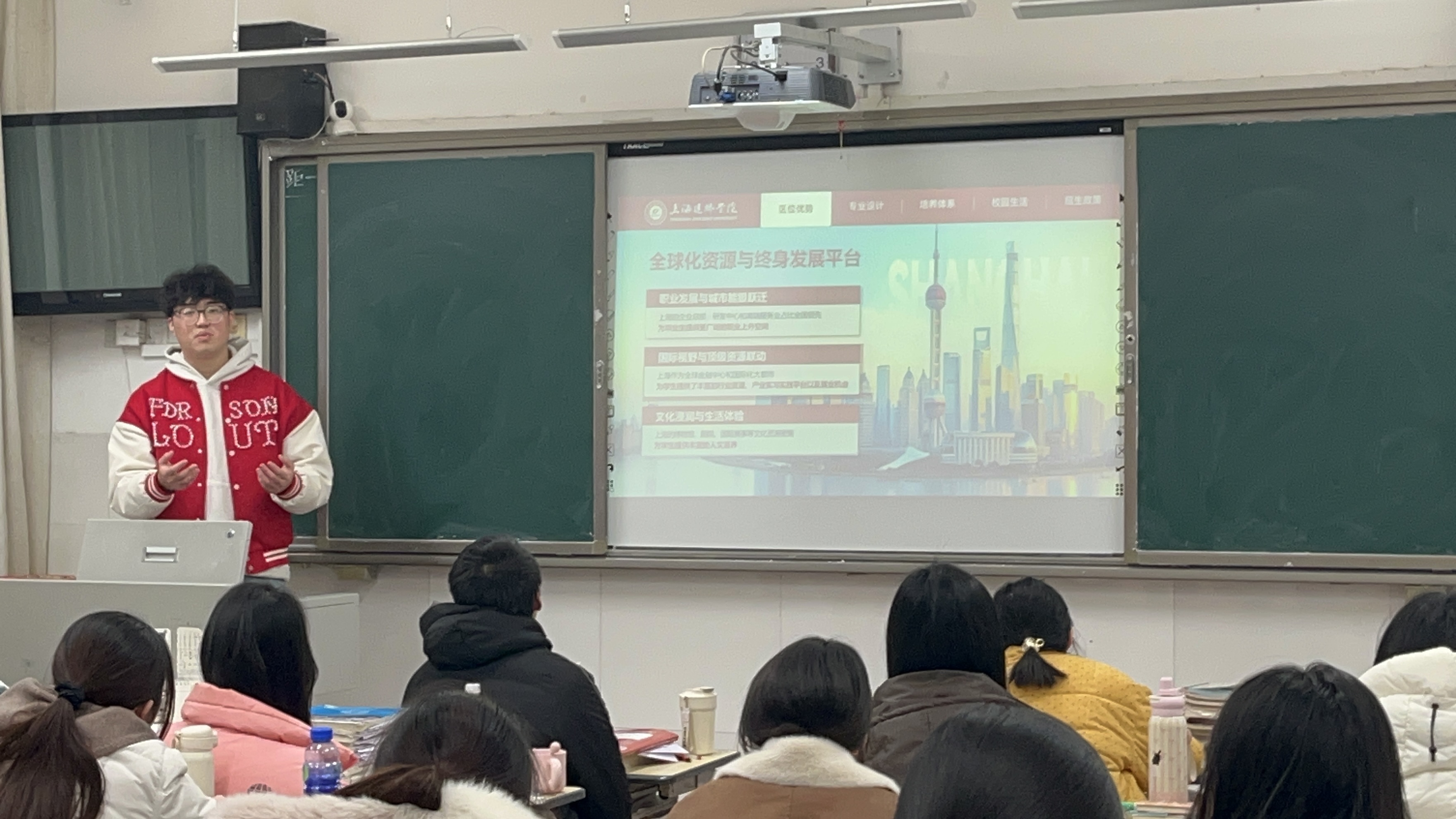 面对突发情况,王启高沉着应对,迅速调整宣讲内容,摒弃冗余表述,聚焦重点、精简流程,严格按照预设的核心框架推进宣讲:3分钟的开场自我介绍,他简洁明了地介绍了自己的班级、身份及此次宣讲的目的;5分钟的学校介绍,他重点讲解了建桥的校园文化与教学特色,让学弟学妹们直观感受建桥的魅力;10分钟的专业展示,他结合自身就读的数字经济专业,介绍了学校的专业优势与未来发展前景,为同学们的专业选择提供参考;最后2分钟的结束语,他总结了宣讲核心内容,真诚鼓励大家努力备考、大胆追梦、积极报考上海建桥学院。宣讲过程中,同学们热情高涨、认真聆听,现场氛围良好,针对性的讲解不仅加深了大家对建桥的理解,也增强了部分学子报考建桥的信心。此次宣讲活动,共覆盖50名高三毕业生,圆满达成了前期设定的宣传目标。
