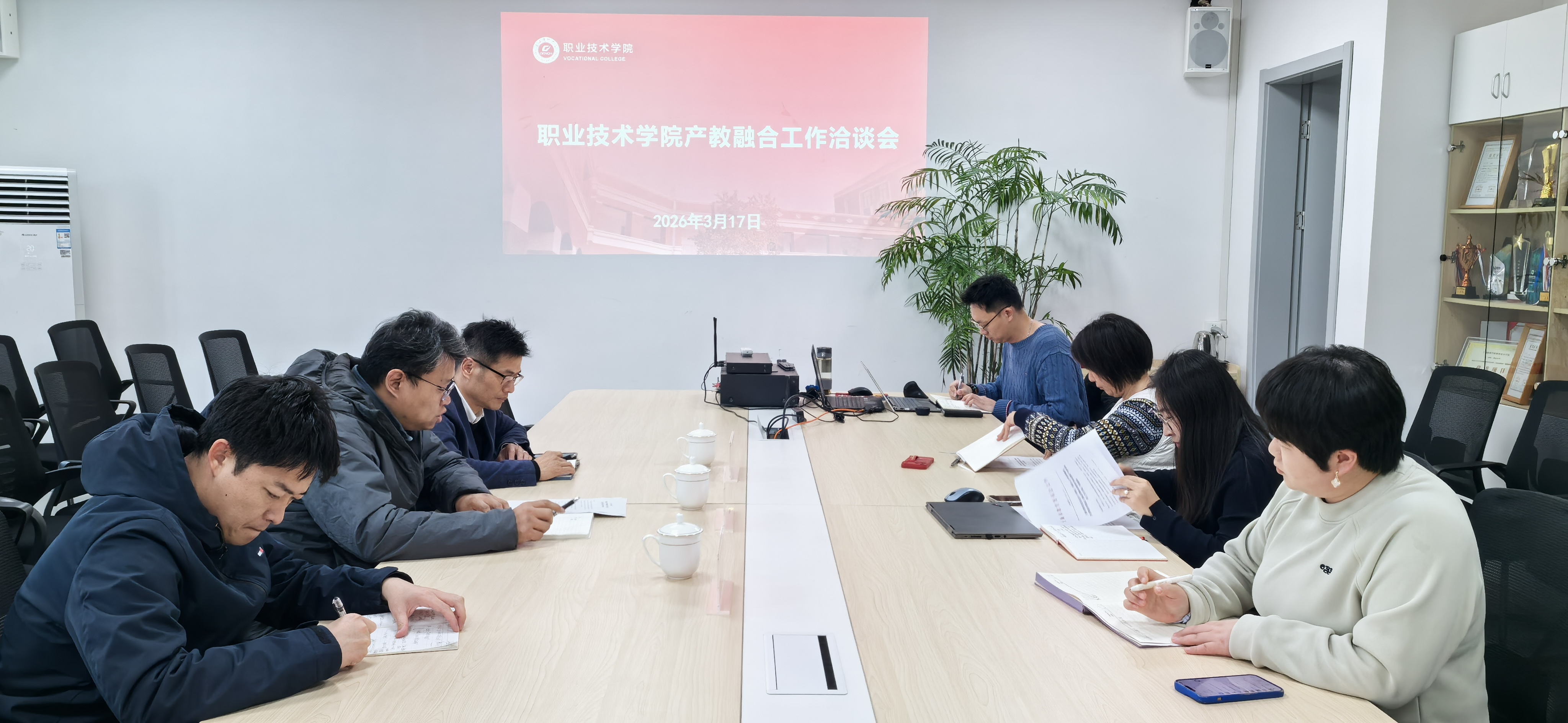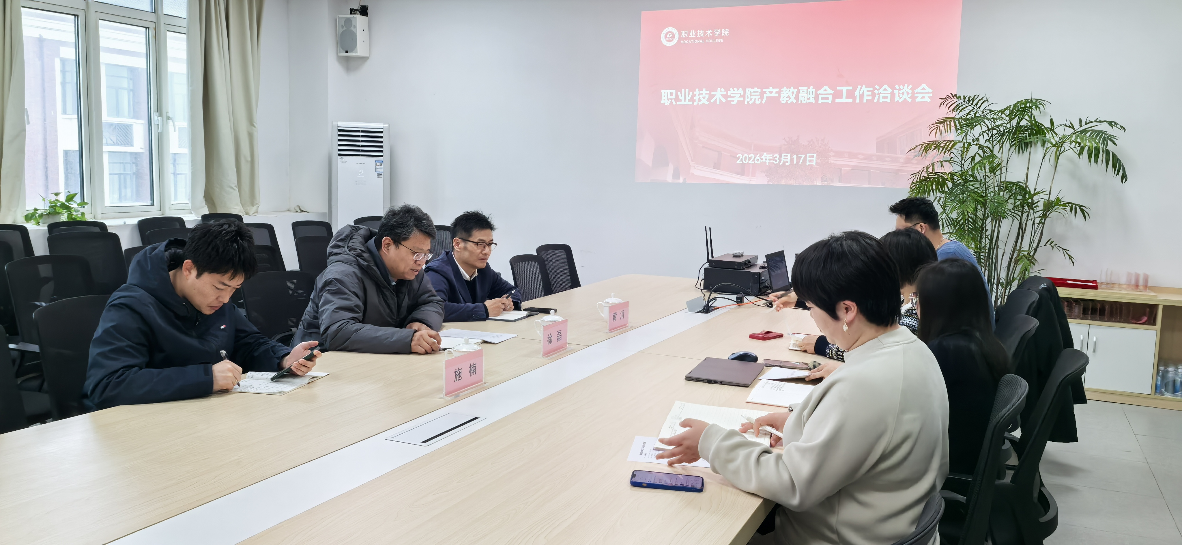 3月17日,职业技术学院召开产教融合工作洽谈会。会议聚焦产教融合试点校申报与校企协同育人核心议题,系统梳理了当前项目资源与推进路径,为深化产教融合、助力校院两级高质量发展凝聚共识、明确方向。职业技术学院领导班子、产教融合促进中心主任徐磊,质量规划办公室副主任黄河出席会议,产教融合促进中心施楠老师陪同参会,会议由职业技术学院党委书记党松杰主持。