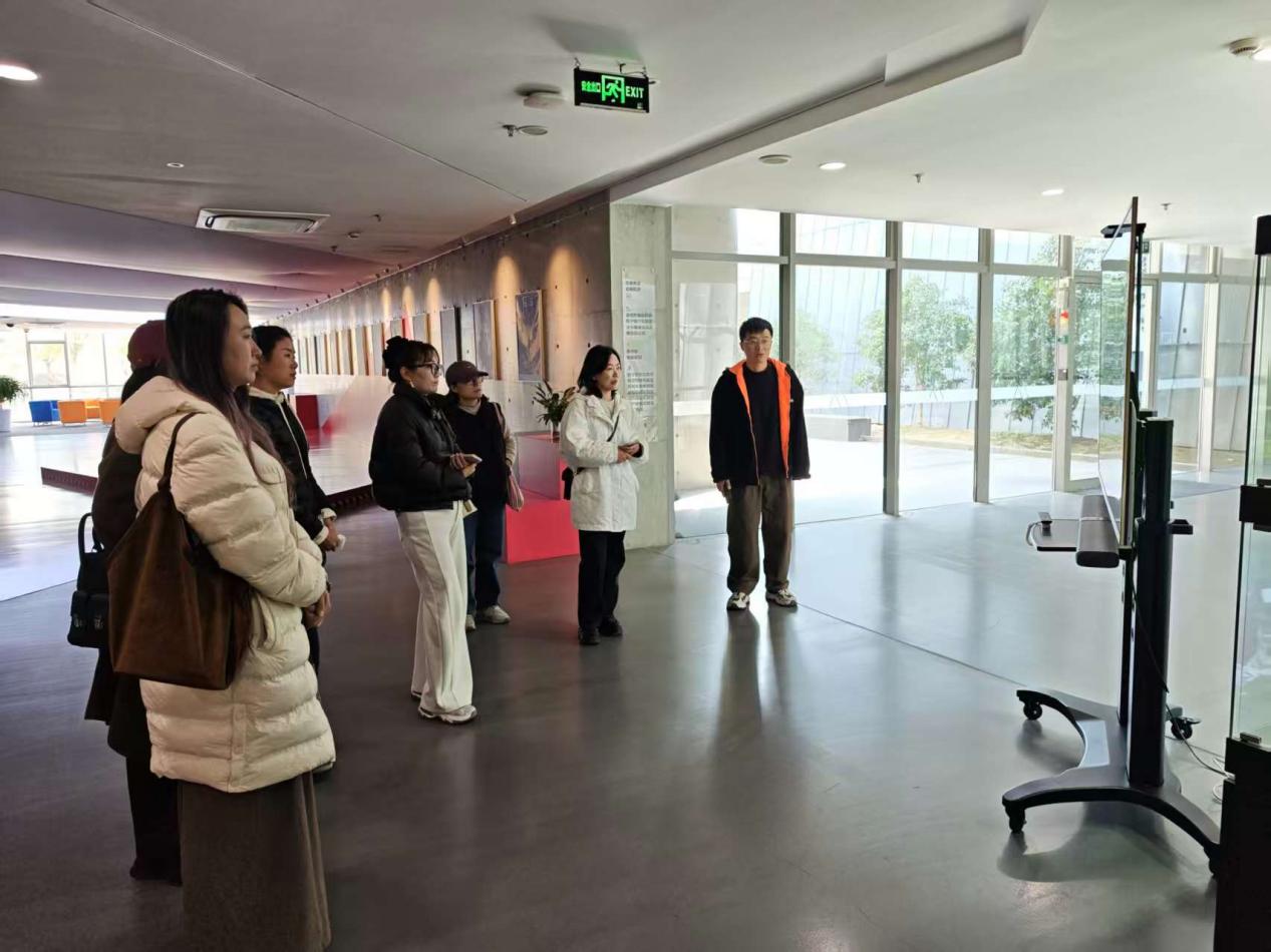 同济大学媒体实验教学中心副主任、艺术传媒学院副教授金云水,向来访教师详细介绍了学院“艺术+技术+传媒”的交叉融合理念,以及涵盖基础理论、专业技能、创新实践的多层次课程体系,重点分享了学生审美素养与数字技术能力同步提升的培养路径。同时,其展示的虚拟大空间研究成果,为我院新一届人才培养方案的优化完善提供了清晰思路,也为双方后续开展合作奠定了良好基础。