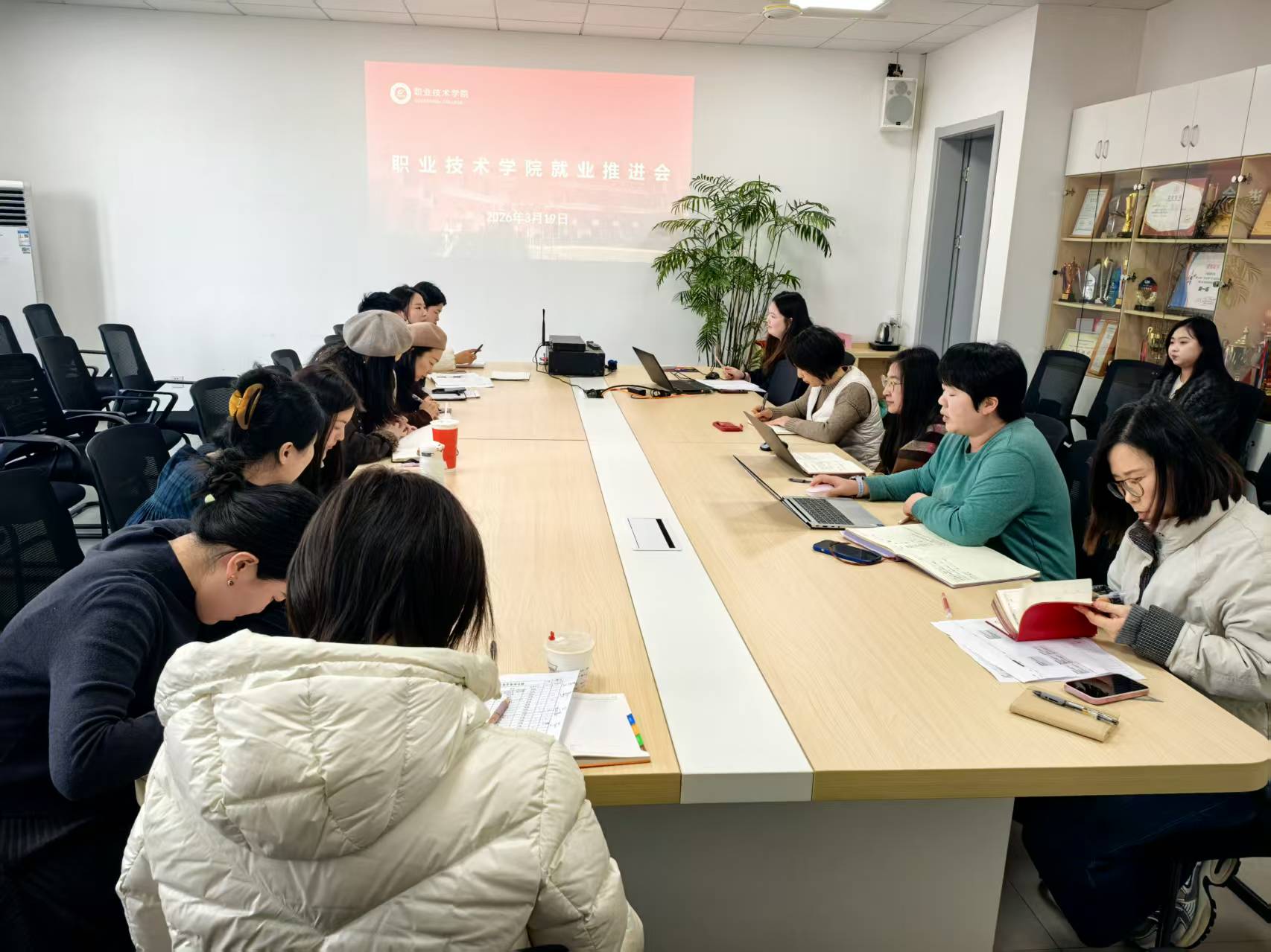 为精准对接毕业生就业需求与企业用人需求,全力提升毕业生就业质量与升学比率,3月19日下午,职业技术学院召开2026届毕业生就业工作推进会议。学院领导班子、全体专业主任及全体辅导员参加会议,会议由学院党委副书记马冯莉主持。