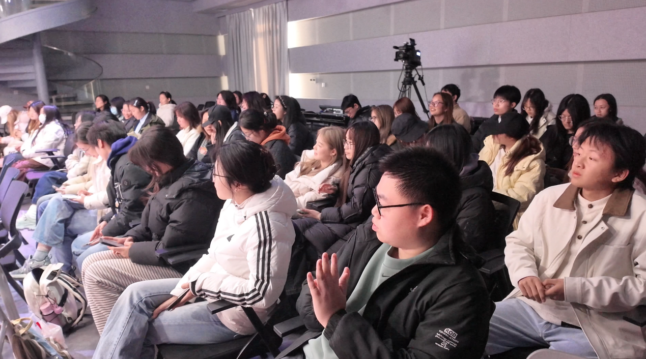 在专业能力培养方面,俞金旻强调,采访与写作是新闻人的立身之本,需做到快速成稿,采访时做好关键词记录与框架搭建。他鼓励同学们善用AI工具优化稿件,但必须坚守真实性底线,绝不能照搬照抄。面对行业转型,俞金旻建议同学们走“新闻+”复合型发展路线,在夯实专业基础的同时,结合兴趣拓展一项新技能。他表示,稀缺技能正成为媒体人的核心竞争力,当大多数人只会写稿时,如果你还能熟练操作无人机航拍、掌握数据新闻可视化或具备某一垂直领域的专业知识,便能在团队中脱颖而出,成为不可替代的那一个。