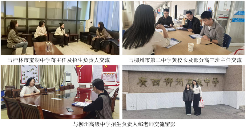 本次招生宣传工作历时5天,工作组累计走访中学10所,与10余所学校的校领导、年级主任、教师进行面对面交流,间接触达学生群体数千人。同时,工作组与广西自治区桂林市招生考试院建立了直接沟通渠道,为后续招生工作争取了政策支持。