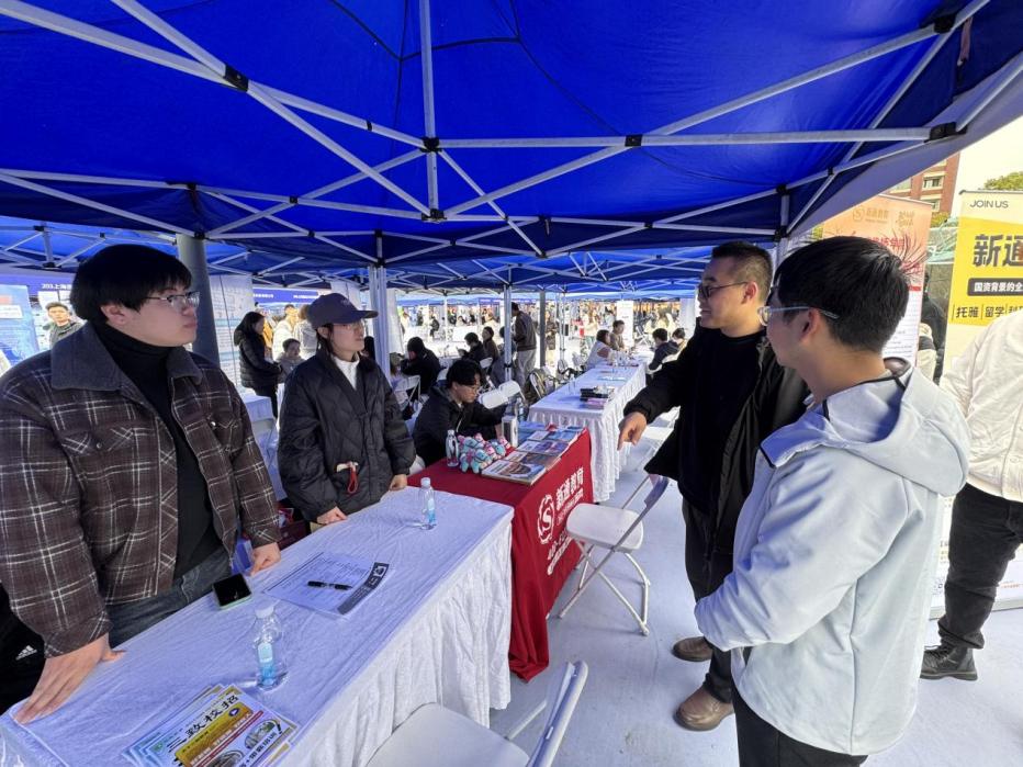学工团队老师们穿梭于各企业展位之间,凭借前期对毕业生情况的精准掌握,主动向与学院专业匹配度高的用人单位进行推荐。在上海环世物流(集团)有限公司展台前,老师们与企业人力资源负责人深入沟通,重点介绍了学院毕业生在外语能力、跨文化沟通及国际商务知识方面的培养特色。企业方对此表示高度认可,并明确将学院列为重点招聘的目标学院之一。