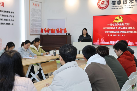 各党支部结合自身实际,分别以“深学细悟强信念,师生共学担使命”“坚守正确政绩观,勇担使命促发展”等为主题,通过动员讲话、文件学习、交流研讨等形式,全面启动学习教育工作。教师党支部重点围绕“立党为公、为民造福、科学决策、真抓实干”的总要求,深入学习《上海建桥学院党委树立和践行正确政绩观学习教育实施方案》,明确从深化理论武装、坚持问题导向、强化实干担当、健全长效机制四个方面扎实推进学习教育,引导教师党员潜心育人、深耕教研,把正确政绩观融入教学科研全过程。学生党支部则立足学生党员实际,强调政绩观不是追求浮华虚名,而是勤学笃实强本领、知行合一担使命,要求全体学生党员在课堂学习、班级服务、志愿活动中践行初心使命,真正理解“政绩为谁而树、树什么样的政绩、靠什么树政绩”。动员讲话后,学生党员代表结合自身学习实践分享感悟,表示要将正确政绩观内化于心、外化于行,在服务师生、服务社会中彰显党员担当。