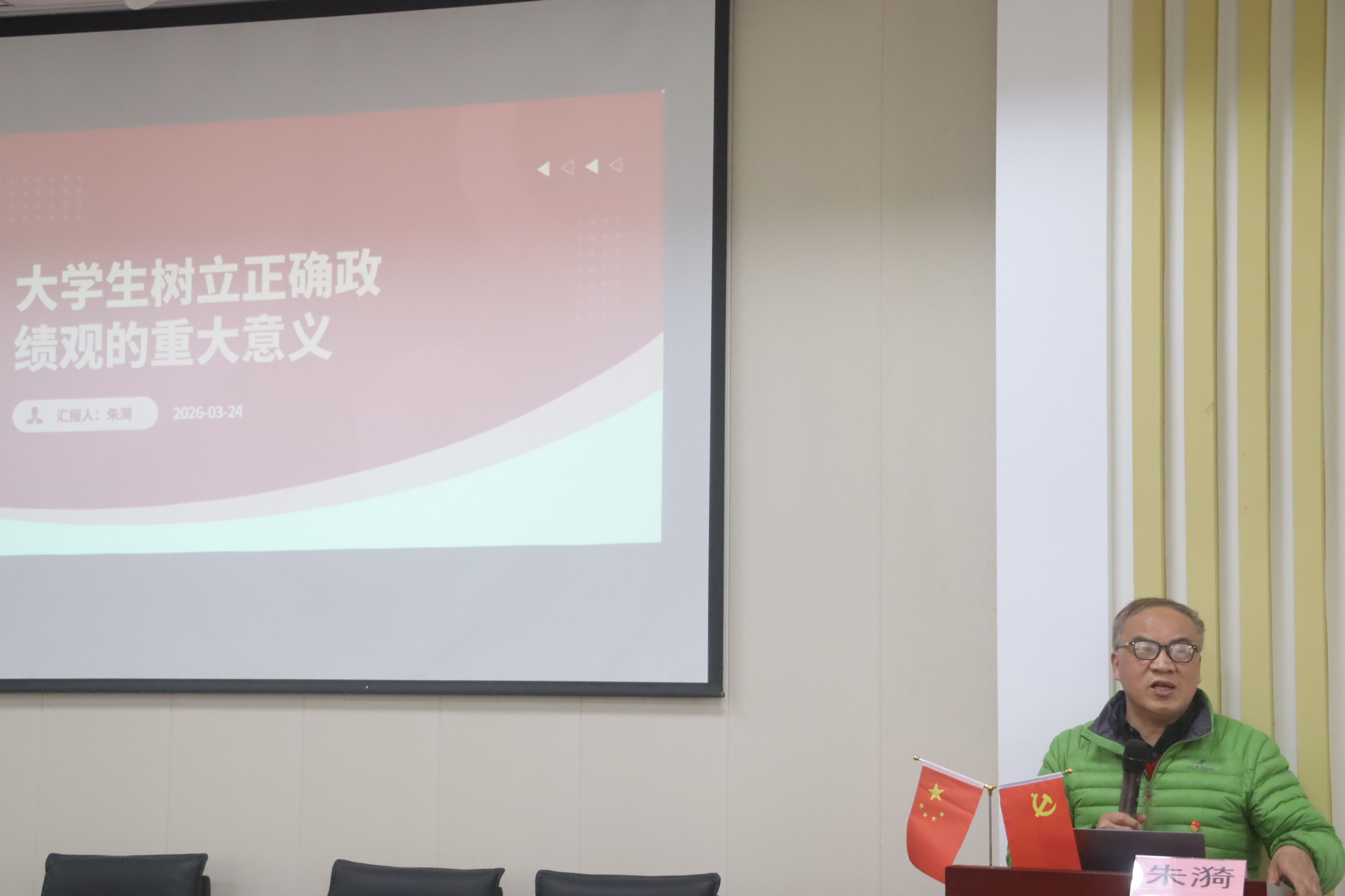 朱漪教授以“树立和践行正确政绩观,筑牢新时代青年责任担当”为主题,以全面从严治党的实践要求为出发点,围绕“入党初心、政绩内涵、青年践行”三个方面展开授课,深入剖析正确政绩观与青年成长、党的事业发展的内在联系,帮助学员们夯实思想根基、强化行动自觉。
