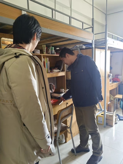 在学业发展与社区建设方面,院长助理韩孝朕与考研学子就备考状态、辅导需求等进行了深入沟通,鼓励学子们加强专业修养,把专业能力与社区文化建设相融合。本次走访由社区辅导员温水俊老师具体组织,实现了对学院南北区学生宿舍的全覆盖。通过实地走访与面对面交流,学院领导班子更直接地掌握了学生的思想动态与实际需求,为进一步提升社区管理育人实效、营造安全文明和谐的居住与学习环境奠定了坚实基础。