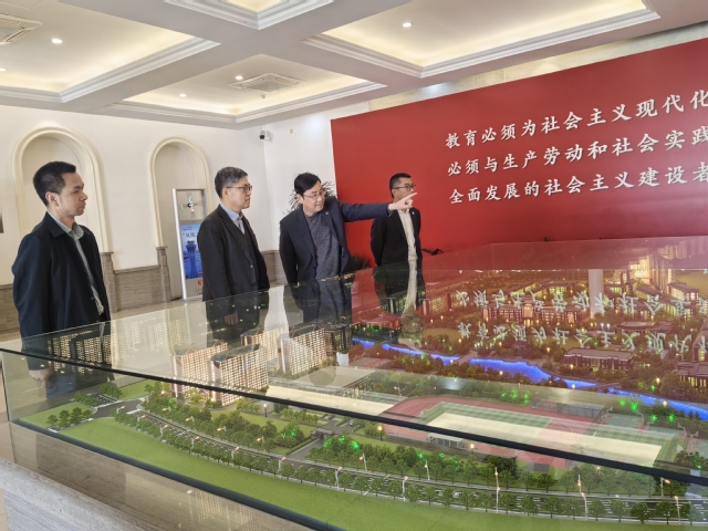 在朱校长等陪同下,调研组首先在行政中心一楼大厅参观了校区模型沙盘。朱校长对调研组的到来表示热烈欢迎,并介绍了校区整体布局与规划。随后,调研组参观了雷锋馆,深入了解我校以学雷锋为核心,构建全流程、体系化学雷锋德育模式的实践与成效,对我校打造学雷锋育人体系的创新做法及取得的丰硕成果给予了高度赞赏。
