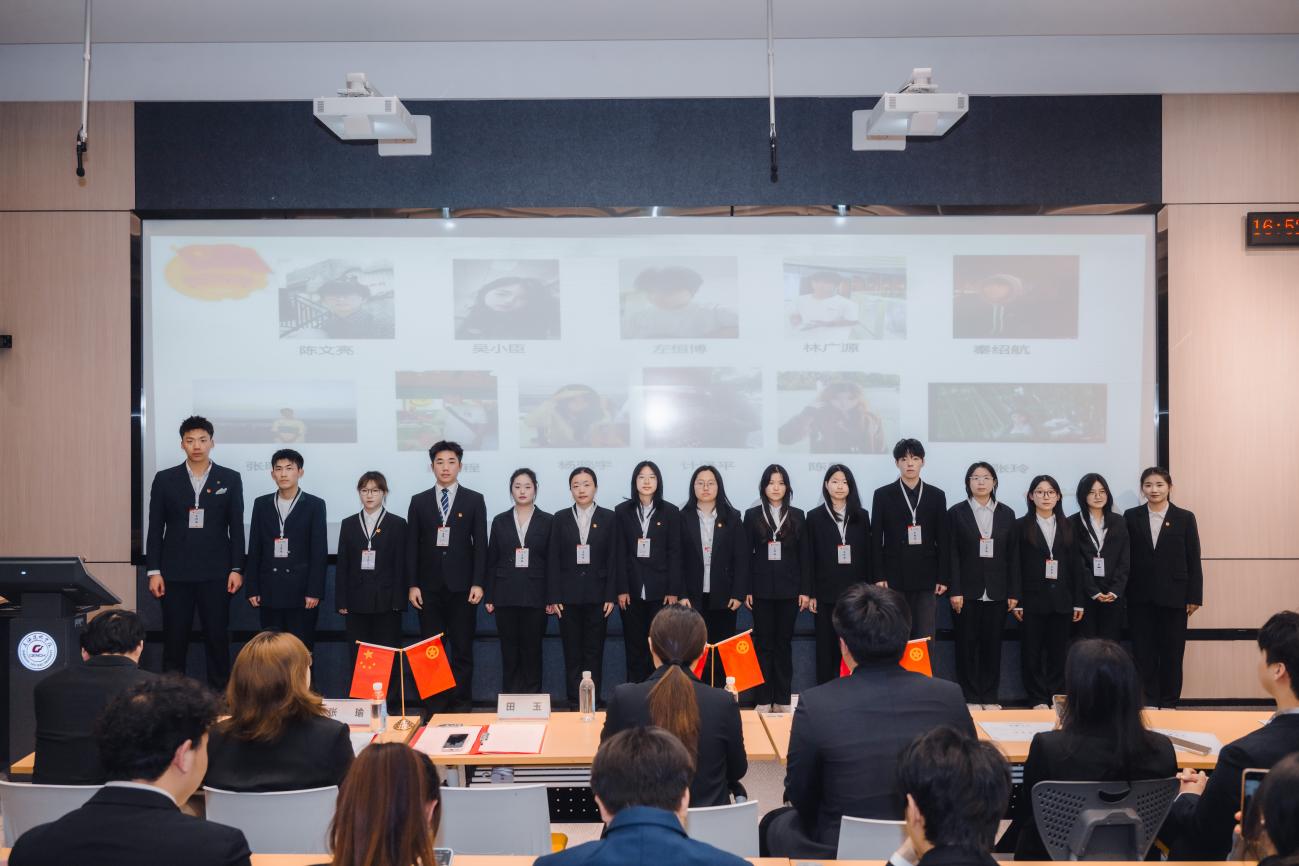 大会伊始,主持人陆君豪逐一介绍莅临现场的老师与嘉宾,宣布大会正式拉开帷幕。全体起立,出团旗、奏唱团歌,嘹亮的歌声回荡在会场,彰显着团学青年的赤诚初心与昂扬风貌,为本次大会奠定了庄重而热烈的基调。