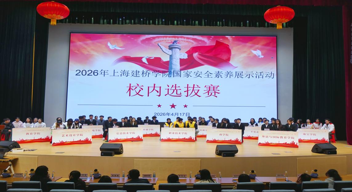 为深入学习贯彻总体国家安全观,积极响应“4.15”全民国家安全教育日号召,紧扣“统筹发展和安全 护航十五五新征程”主题,2026年4月17日下午,上海建桥学院国家安全素养展示活动校内选拔赛在雷锋礼堂顺利举办。本次比赛由学校后勤保卫处、学生处、校团委联合组织,各二级学院组成的11支学生队伍同台竞技,共同学习国家安全知识、展现青年责任担当。