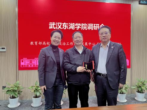 4月17日,武汉东湖学院党委书记姚海峰、教育部高校思想政治工作创新发展中心(武汉东湖学院)办公室副主任任鸿雁一行莅临我校调研。我校党委书记、思政创新发展中心主任杨伟人,副校长、思政创新发展中心常务副主任陈伟及相关职能处室负责同志陪同调研并参加座谈。