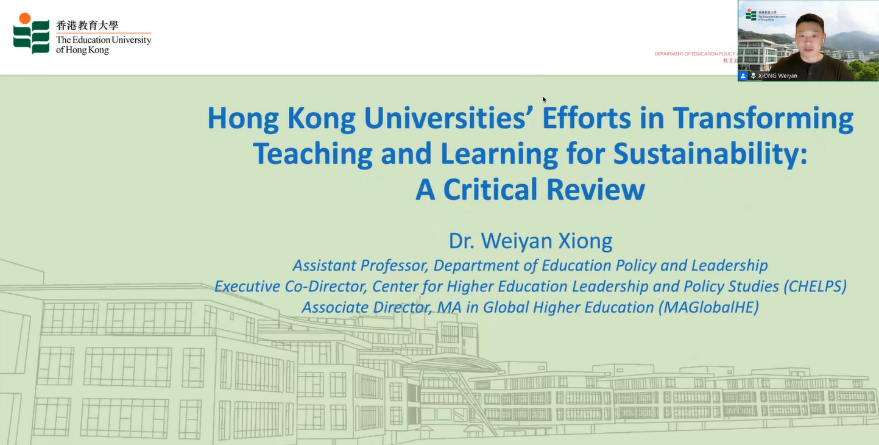 本次讲座邀请香港教育大学国际高等教育专家熊卫雁教授主讲,围绕“香港高校推动可持续发展目标(SDGs)的教学变革”展开系统性回顾与分析。熊教授结合多年研究与实践经验,从治理模式、课程体系到制度环境,深入剖析了香港八大高校在可持续发展教育中的特点与挑战,为与会者呈现了一幅立体的区域性ESD发展图景。