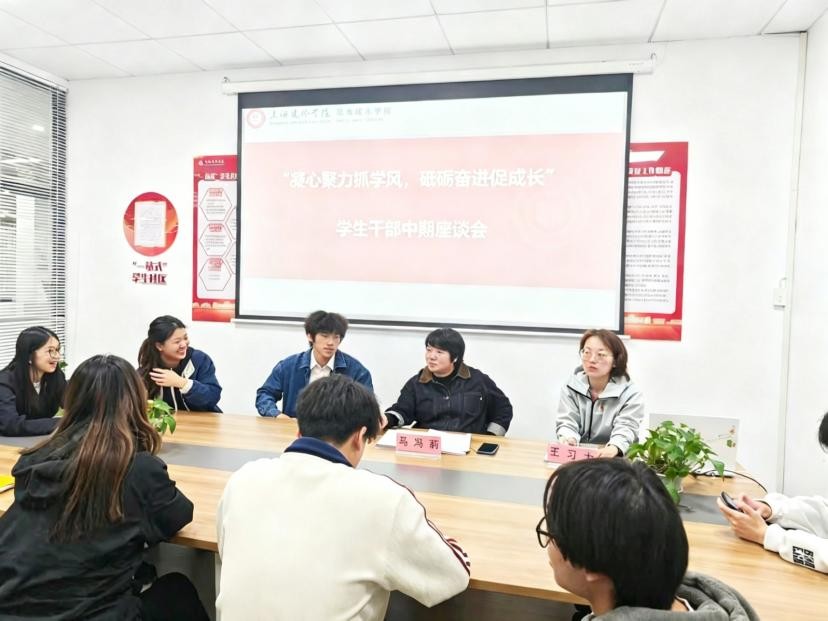 为深入贯彻落实学院学风建设工作要求,精准掌握班级管理现状,倾听学生真实诉求,凝聚育人工作合力,2026年4月23日,职业技术学院于北七北八202活动室召开2025级学生干部中期座谈会。学院党委副书记马冯莉、辅导员王习力老师出席会议,2025级各班班长、学习委员等学生干部代表参会。会议围绕学风建设、日常管理和校园工作满意度三大核心议题开展交流座谈。