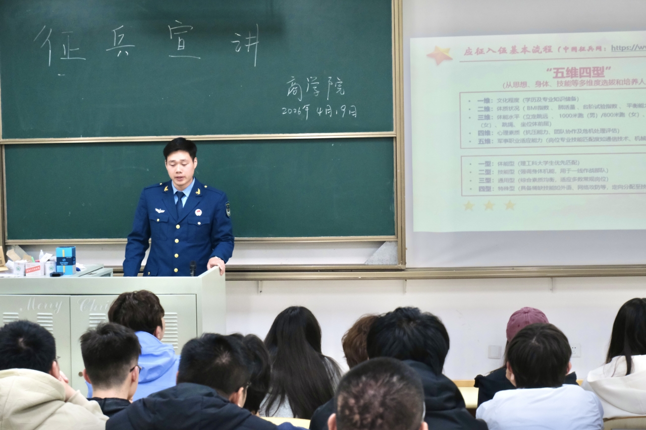 下一步,商学院将持续强化征兵宣传引导,做细做实服务保障工作,引导更多青年学子携笔从戎、矢志强军,为2026年秋季征兵工作筑牢基础,让青春理想与家国情怀同频共振,在国防和军队建设的生动实践中绽放青春光彩。
