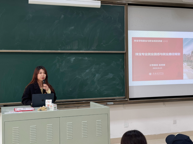 2026年4月23日下午,上海建桥学院珠宝学院就业与职业规划专题讲座于第四教学楼 112 教室顺利开展。本次讲座由珠宝学院分团委书记董蕊老师主持,特邀行业资深从业者吴思琦老师莅临分享。出席本次活动的嘉宾还有:珠宝学院党总支书记王苇、华慧虹老师。讲座立足珠宝行业发展现状,聚焦毕业生求职痛点,旨在帮助同学们缓解就业焦虑、明确职业发展方向,全面提升青年学子就业竞争力与职业综合素养。
