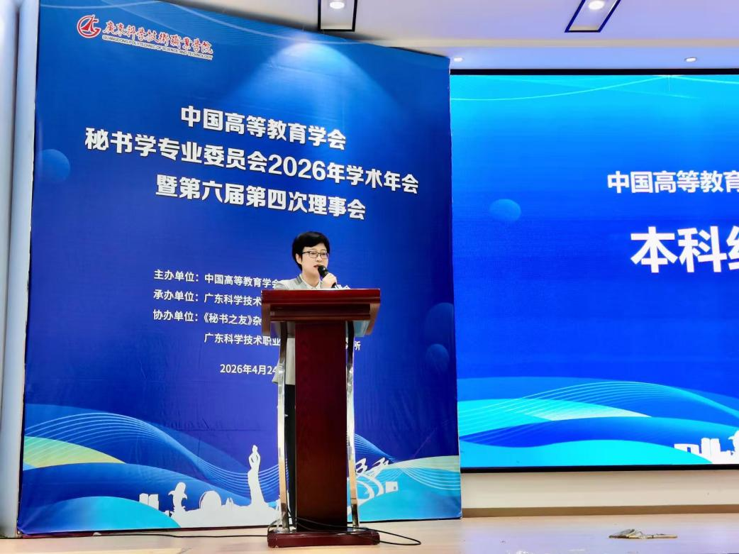 4月24日至26日,中国高等教育学会秘书学专业委员会2026年学术年会暨第六届第四次理事会在广东科学技术职业学院举行。上海建桥学院新闻传播学院院长院长徐磊及学院相关老师出席。