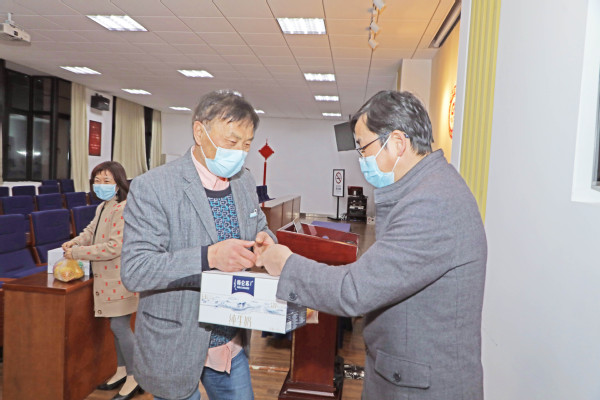 3月15日,学校校长朱瑞庭、党委书记江彦桥、工会主席夏雨代表学校党政领导走访慰问了奋战在学校抗疫一线的教职工,亲自把慰问品送到教职工手中,并向在校值守的教职工们表示深切的问候。校工会副主席潘秀玲等相关人员随同前往。朱校长一行查看了学校给留校教职工们准备的物资和住宿安排等,对教职工们在校的生活、工作等各方面的情况表示了极大的关切,对大家在疫情中能够勇于迎难而上、团结协作、担责尽责、舍小家为大家、坚守岗位、守护校园的奉献精神表示了由衷地感谢!朱校长和江书记提醒大家要继续增强防护意识、履行好防控责任、积极配合各级组织的防控措施安排,严格遵守“一米线”“三件套”“五还要”等措施,做好个人防护,注意身体,劳逸结合。同时要关心关爱关注在校学生的身心健康,做好网上课堂的教学工作,以高度的责任感维护好疫情防控期间学校的教学秩序和生活秩序,守牢校园防“疫”墙,守护好全校师生的身体健康和生命安全。疫情无情人有情,校领导的关怀安抚了在校教职工的心田,使大家倍感温暖,更有信心尽早打赢疫情防控攻坚战。大家表示,一定同心同德、共克时艰、全力配合学校的各项防疫措施,尽心竭力打好疫情攻坚战。校工会作为教职工的“娘家人