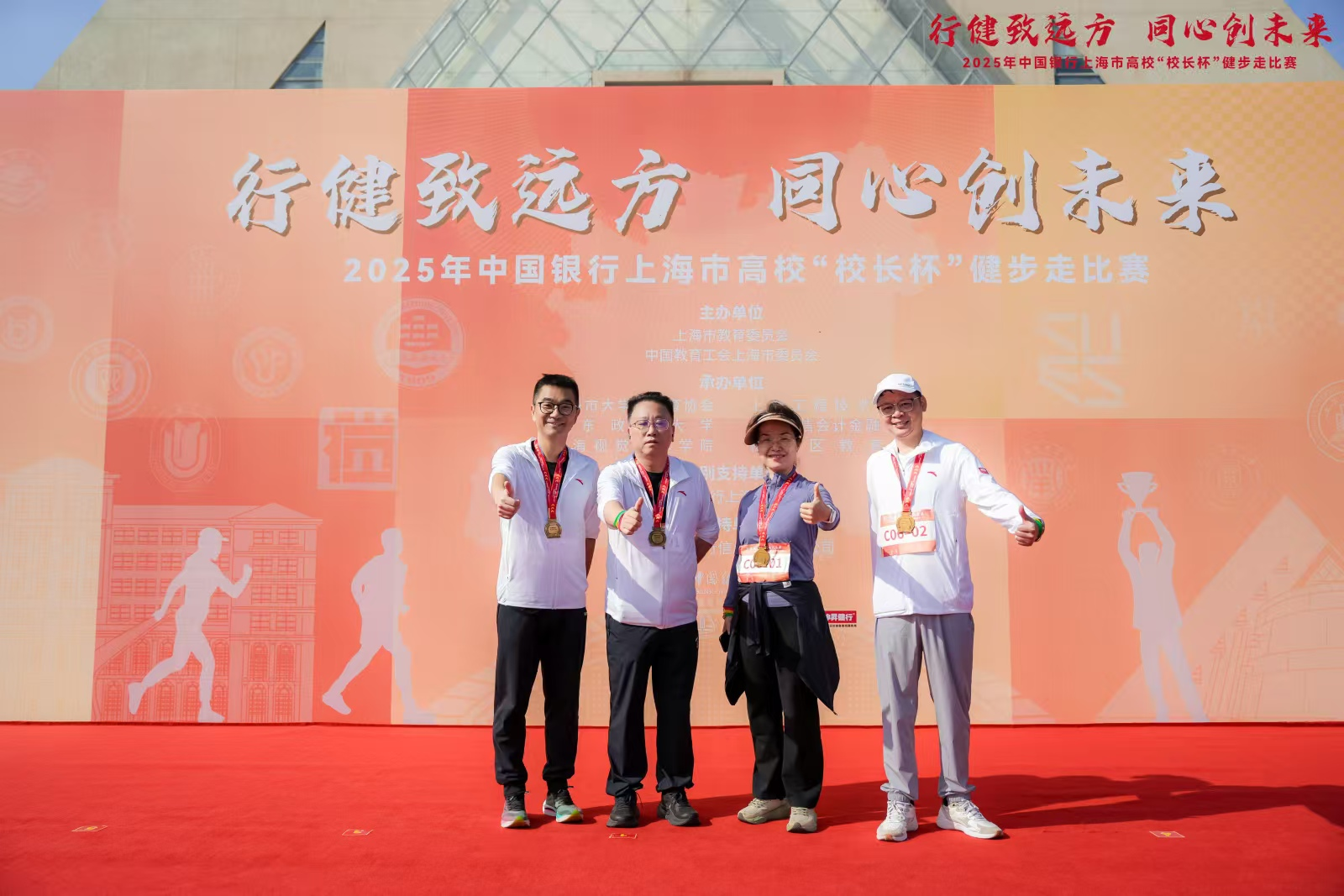 11月15日,2025年中国银行上海高校“校长杯”健步走活动在上海工程技术大学顺利举行。我校党委书记杨伟人率队,副校长陈伟、王邦永和校长助理张巍参加了此次活动。活动中,校领导精神抖擞、步履铿锵,以实际行动践行“全民健身”的时代号召,也用昂扬姿态展现了教育工作者积极向上的精神风貌,为全校师生树立了崇尚运动、追求健康的良好榜样,传递出“行健致远方,同心创未来”的满满正能量。经过激烈角逐,我校荣获团体二等奖,陈伟副校长荣获女子组一等奖。本次活动由上海市教育委员会、中国教育工会上海市委员会主办,上海市大学生体育协会、上海工程技术大学、华东政法大学、上海立信会计金融学院、上海视觉艺术学院、松江区教育局共同承办。活动以“健康生活、快乐工作”为理念,旨在丰富高校校园文化,促进各高校之间的交流与合作。赛事共吸引了来自各高校的114名男领导和49名女领导积极参与。供稿:校工会