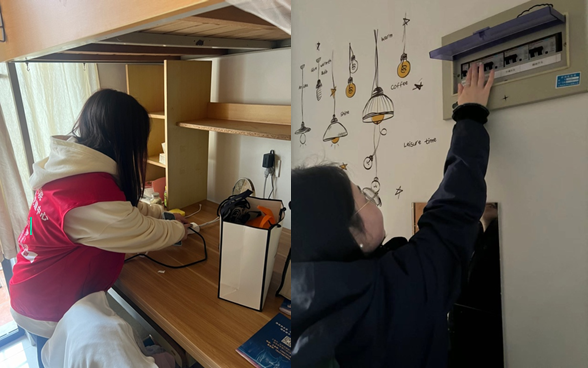 为扎实推进学院安全工作、确保校园的安全稳定、加强师生安全意识,我院积极开展一系列的安全防范措施。4月1日下午,外国语学院在229召开安全稳定工作会议,学院领导班子、办公室、实验室及全体辅导员参加会议。会上,毛立群院长传达了学校有关文件精神,通报并部署学校下一步校园安全工作。他指出,高校是人群密集度较大的场所,广大教职工应该高度重视实验室、办公室、教室等场所的消防安全,及时排除安全隐患。随后,外国语学院党委书记杜鹃具体部署了近期工作,强调要牢固树立安全发展理念,进一步增强安全意识,强化安全教育和压实安全责任。为切实落实会议精神,深入贯彻校园安全观,学院各部门根据学院工作要求,分工有序开展工作。4月1日-2日,辅导员陆续在所在班级开展安全教育主题班会,同时,辅导员带领学院党建中心学生骨干与社区管理委员会骨干深入学生寝室,进行全覆盖安全检查。参与活动的师生分成小组,深入到社区的各个角落,对学生社区用电安全、消防安全以及公共设施进行了全面细致的安全检查。针对宿舍插座未断电、阳台有烟头或者堆物的情况,及时处理并消除潜在的安全隐患,保障了校园的整体安全。4月3日,院办、实验室对学院楼进行了全面安全