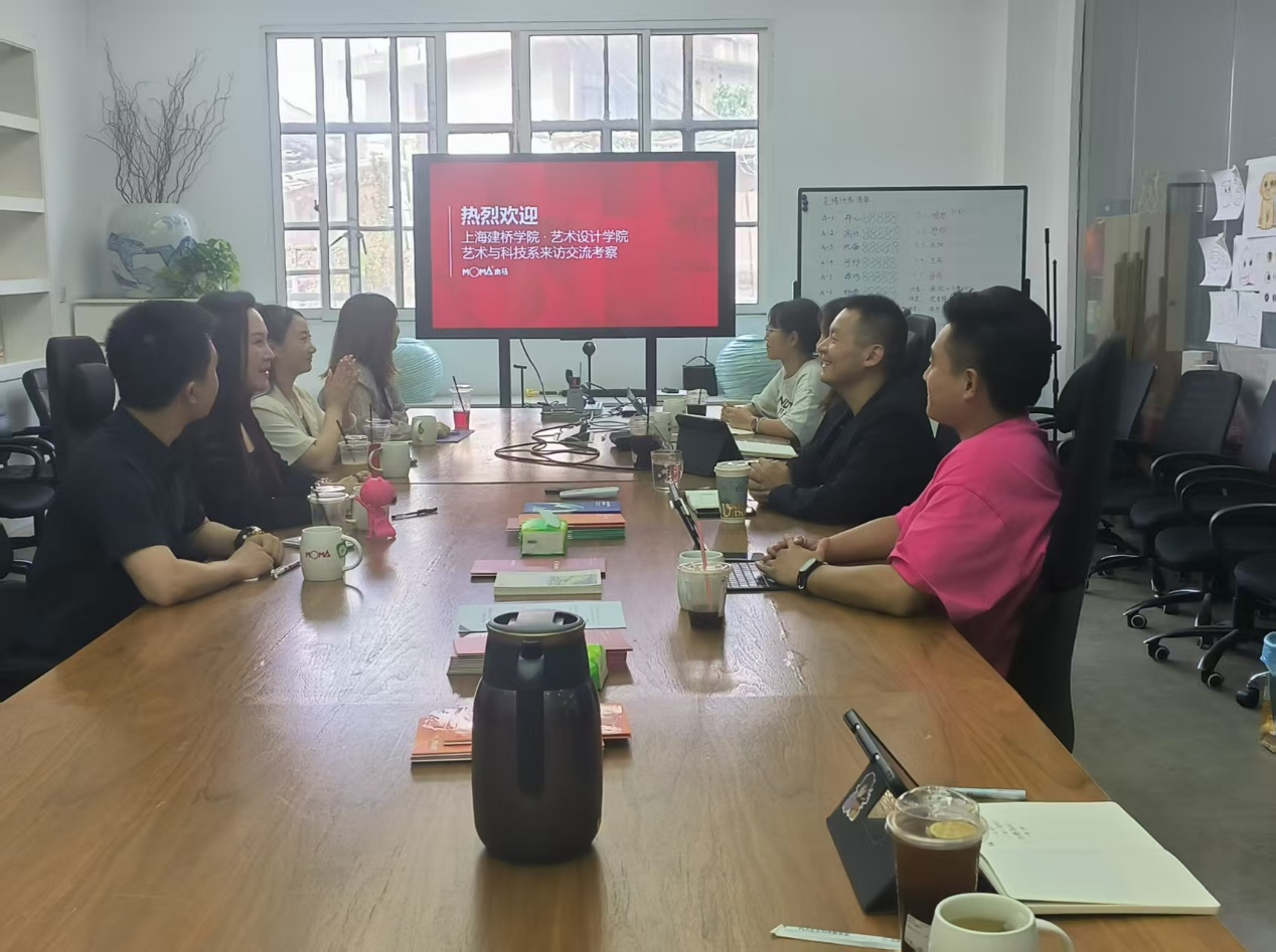 为推动产学研深度融合,探索数智时代文创设计人才培养新模式,7月15日,上海建桥学院艺术设计学院艺术与科技系老师高一方、徐行、丁易、牛向南一行赴国内工业设计标杆企业——上海木马工业产品设计有限公司(以下简称“木马设计”),围绕共建“数智交互文创产业学院”的核心议题,展开深入交流。聚焦前沿,探索产教融合新路径本次访问旨将高校的前沿学术研究与企业丰富的产业实践相结合,共同应对数智技术对文创设计产业带来的深刻变革。师生实地考察了木马公司创新的设计流程、先进的技术应用平台以及众多荣获国际大奖的成功案例,特别是其在智能硬件交互设计、用户体验研究和文化IP数字化创新领域的领先实践。共绘蓝图,研讨产业学院建设核心在随后举行的专题座谈会上,双方聚焦“数智交互文创产业学院”的构想进行了务实而热烈的讨论:人才培养体系共建:探讨如何将木马设计在数智交互产品设计、用户研究、品牌策略等方面的实战经验融入艺术与科技专业的课程体系与教学项目,共同开发基于真实产业需求的模块化课程与实训项目。实践教学平台共享:商议依托木马设计强大的项目资源和设计工程能力,联合打造高水平的校外实践基地与校内联合实验室,为学生提供接触尖端设