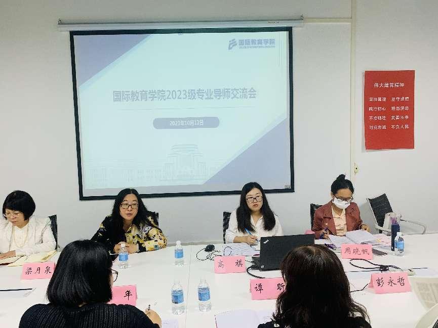 为全面贯彻执行党的教育方针,落实“全员育人,全程育人,全方位育人”理念,进一步强化“三位一体”育人机制中专业导师工作的实效性,10月12日,国际教育学院召开2023级专业导师交流会。学院院长梁月泉、党总支书记周英芬、党总支副书记高祺、学院办公室主任张文静、日语教学中心主任杨晓兴、2023级各班级专业导师及各班级辅导员老师参会。会议伊始,梁月泉院长强调学院始终坚持辅导员、专业导师、辅导员助理的“三位一体”育人模式,她对专业导师工作的重要意义作出了阐释,并指出要结合学院特点将“三位一体”育人机制落到实处。高祺副书记详细解读了“三位一体”育人机制中专业导师的工作职责。她强调,专业导师要密切关注所带班级学生,同时要和辅导员、辅导员助理保持沟通,相互配合,提升协力育人效果。随后,各班级专业导师与辅导员老师交流了学生情况,并就如何结合学院特点、学生特点有针对性地开展协同育人工作进行了深入研讨。最后,学院党总支书记周英芬表示专业导师的设置是“三位一体”的重要一环,专业导师要坚持立德树人,结合自身的专业背景帮助学生树立学习目标,指导学生参加各类科创竞赛,与辅导员、辅导员助理协同合作,营造学院优良学风。