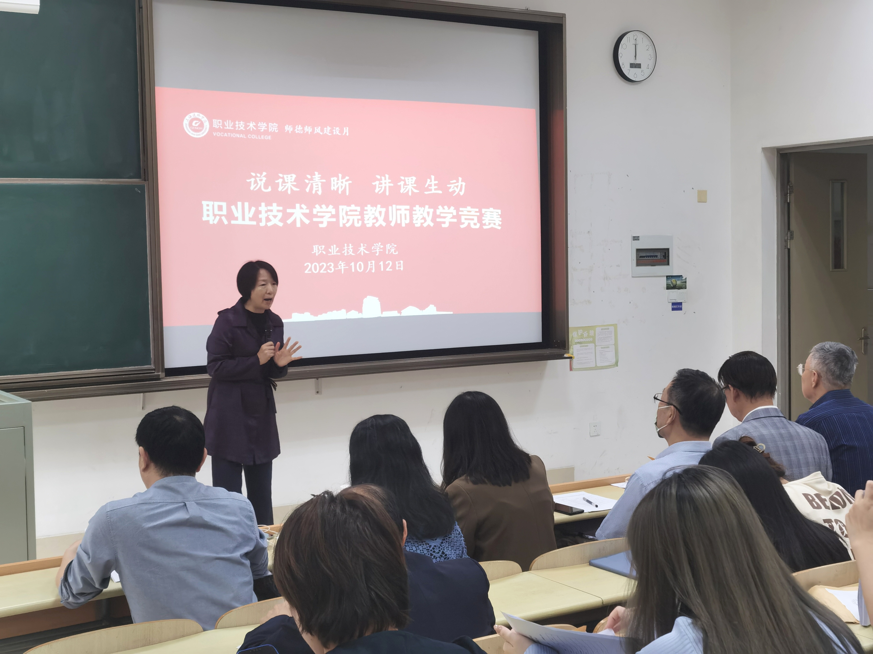 为配合学校教师教学竞赛活动的开展,进一步提高职院教师教学能力和教学水平,激发教师的教学活力,职业技术学院于10月12日下午在四教110教室举办了学院教学能力竞赛活动。此次活动由副院长陈莲君主持,全体教师参加,王加宁、管陆建、蒋忠理、左翼、栗小丹五位老师担任评委。 活动伊始,陈莲君副院长对此次竞赛形式、实施方案、评分方法一一做了说明和要求。李蓓蓓老师的微观经济学是一门混合型教学课程。通过课上案例的分析和小组讨论,学生们能够利用古诺模型进行寡头垄断企业的决策分析,并且结合生活中的真实案例,判断短期、长期决策,达到理论学习和生活运用的目标。课上设计的小游戏,能充分让学生积极热情参与,加深对理论的理解和体会。王骁飞老师的国际商务谈判课程,说课环节以案例进行角色扮演是一个很有特点的形式,模拟谈判让学生置身谈判环境中,从而达到学生综合能力的提升。通过教材案例设计出国际商务谈判准备阶段的基本要素,并进行有效组合,让学生能够通过信息网络、APP等获得谈判准备阶段的相关案例,具有较强应用各类信息化学习平台能力。刘慧老师的航空运输地理课程,通过介绍民航的专业知识和地理学的相关知识,帮助学生了解全球航空运输