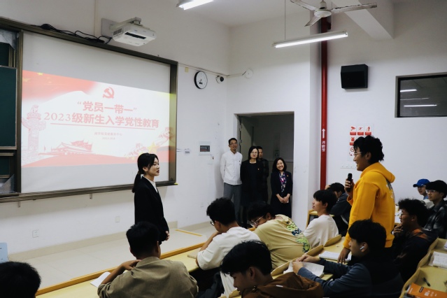 1111MicrosoftInternetExplorer402DocumentNotSpecified7.8 磅Normal0为深入学习贯彻习近平新时代中国特色社会主义思想,激发大学生政治意识、爱国情怀,积极向党组织靠拢。为了让23级新生了解入党流程,端正入党动机。10月10日晚,商学院党委组织开展新生入学党性教育第一课——“学生党员一带一”活动。商学院党委书记刘爱香、党委副书记俞海燕、党建服务中心指导老师全程参与并指导工作。“学生党员一带一”活动是商学院党委组织发展工作的重要基础,也是商学院党委基层党建工作的品牌活动。经过前期选拔和培训组成学生党员讲师团队,对接每个行政班级,利用新生晚自习时间,通过习近平新时代中国特色社会主义思想、党史理论等讲解、微视频展示、现场互动等环节和方式,向23级新生生动地讲解了中国共产党百年的光辉历程,同时结合学生党员自身入党经历,从“入党申请人-入党积极分子-党员发展对象-预备党员-正式党员”五个阶段向新生们详细介绍了党员发展的具体流程,解答了同学们对入党过程中的诸多疑问。通过此次活动,同学们纷纷表示要永远跟党走,树立为人民服务的意识,认真学习,踏实进
