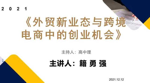 12月12日下午,商学院创新创业指导中心组织举办了主题为“外贸新业态与跨境电商中的创业机会”的讲座,邀请企业家籍勇强为商学院国际经济与贸易专业和电子商务专业大三学生做世界经济与贸易领域相关行业发展前沿动态讲座,受到学生听众的热烈欢迎。讲座由国际经济与贸易专业负责人高中理教授主持,此讲座是系列创业讲座课程之一,是持续深化产教深度融合、校企合作的落地措施,也是致力于建设国家一流本科专业的措施之一。围绕“外贸新业态与跨境电商中的创业机会”,籍勇强总经理通过大量包括自己创业运营的企业在内的行业企业实际运营的VIOMALL业务案例,深入浅出,清晰描述了数字驱动的全球离岸贸易、跨境电商发展的全球运营新业态,在近年来特别是疫情期间不断加速发展带来的新变化,介绍了数据驱动的新业态对于专业领域的青年大学生们的创业发展发展机会。近年来,在数字化加速以及全球疫情多因素影响下,产业数据化为供需两端走出境外,跨境电商牵引国际分工的新时代,为更加便捷的全球交易和穿越时空的交易全球化提供了便利条件,开启了国际贸易全球化融合新时代。从竞争分利到合作共赢,跨境电商拓展了跨境交易互联网时代的全球产品中心、全球运营中心新版